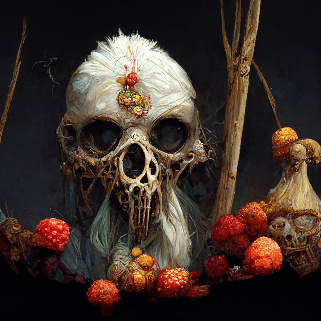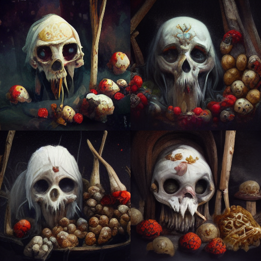 В общем, я тоже решил немного поколдовать с нейросетью на тему Славянского фольклора. Итак внимание, перед вами череп Бабы Яги :) В разных вариациях. Хотя просил Бабу Ягу, которая пожирает черепа, но оно вот оно как.