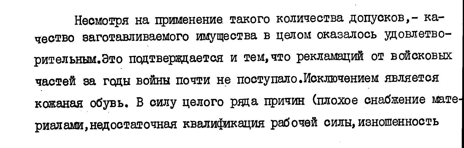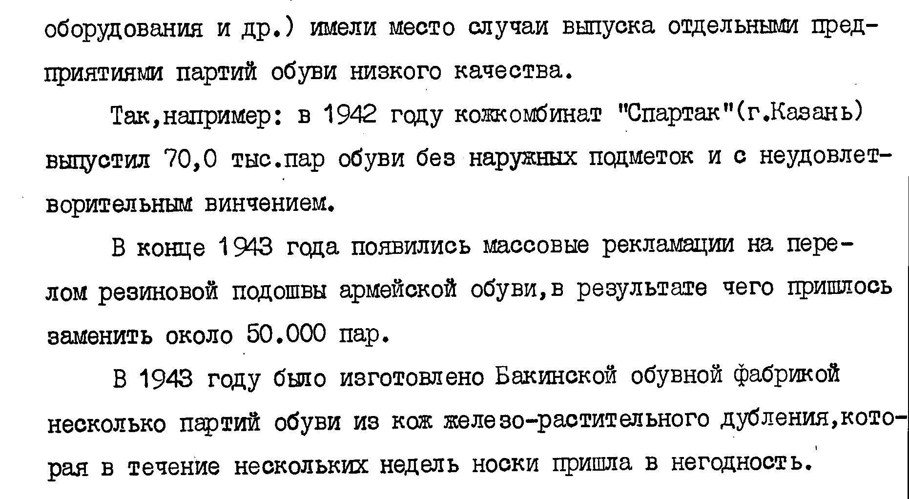 Обо всех объективных трудностях хорошо известно, и они были характерными не только для одной этой республики. Да и выпускали бракованную продукцию не только эти два предприятия, попавшие в итоговый отчёт, а затем, как следствие, во многие книги, посвящённые работе вещевой службы в годы Великой Отечественной войны. Разные случаи были, о них тоже при случае расскажу.