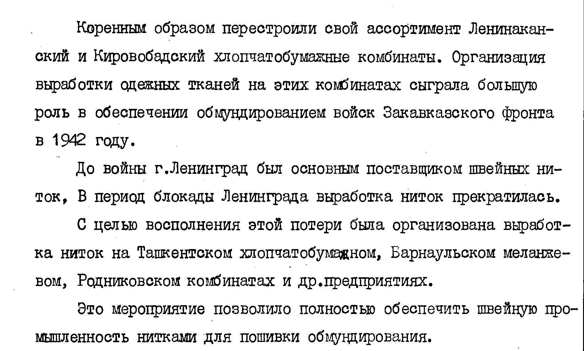 Так что правду написал капитан Петр Александрович Инаев, объективно осветил ситуацию. В лёгкой промышленности Азербайджанской ССР были серьёзные проблема, причём складывается впечатление, что практически не решаемые.