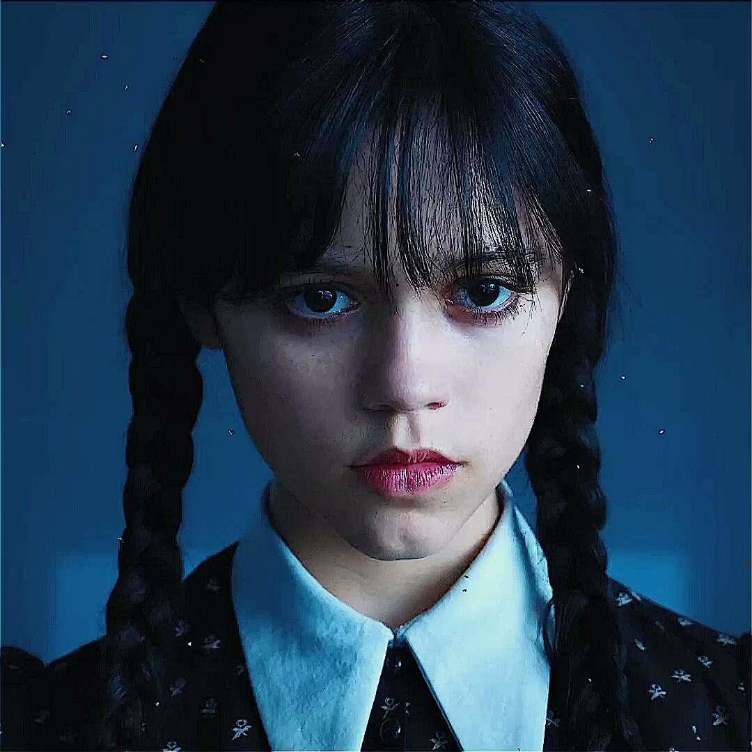 Венсдэй в сериале почти не моргает, смотрит на зрителя исподлобья, поражает симметричностью косичек (режиссер уделял им особое внимание, бесконечно подстригая актрисе волосы и выравнивая прическу) и пластичностью.