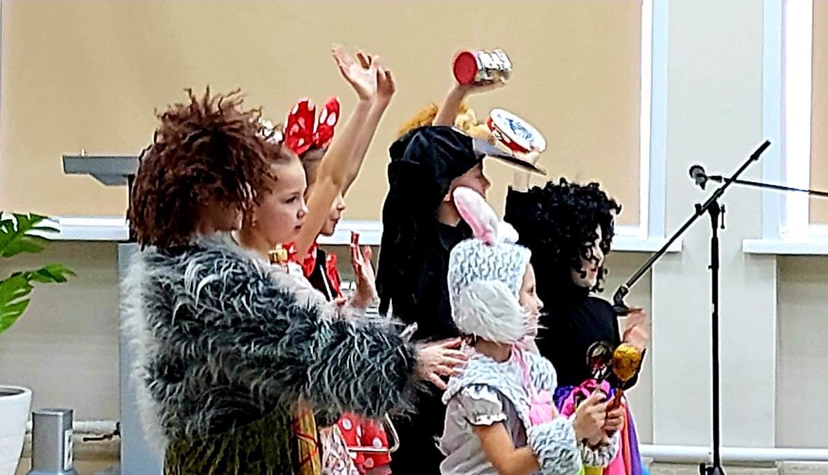 Дети в костюмах героев сказки "Емошка Добродей" исполнили песенку из первой книжки этой серии "Ермошка Добродей и волшебные часы". Меня - автора этой книжной серии такой музыкальный подарок очень и очень порадовал!