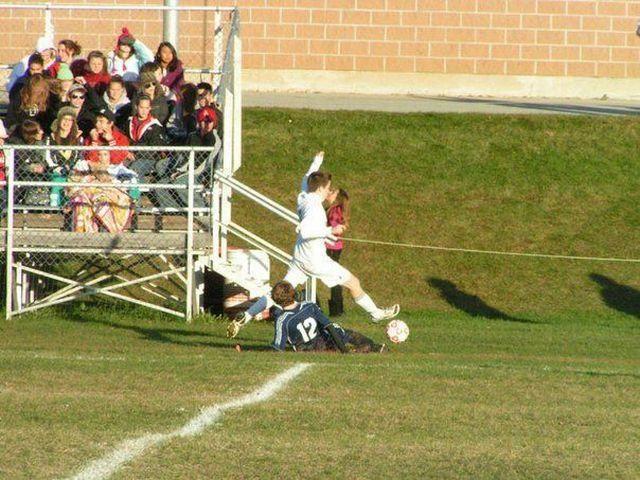 Когда футболист совершает удар по мячу и одновременно целует девушку. Многозадачность!