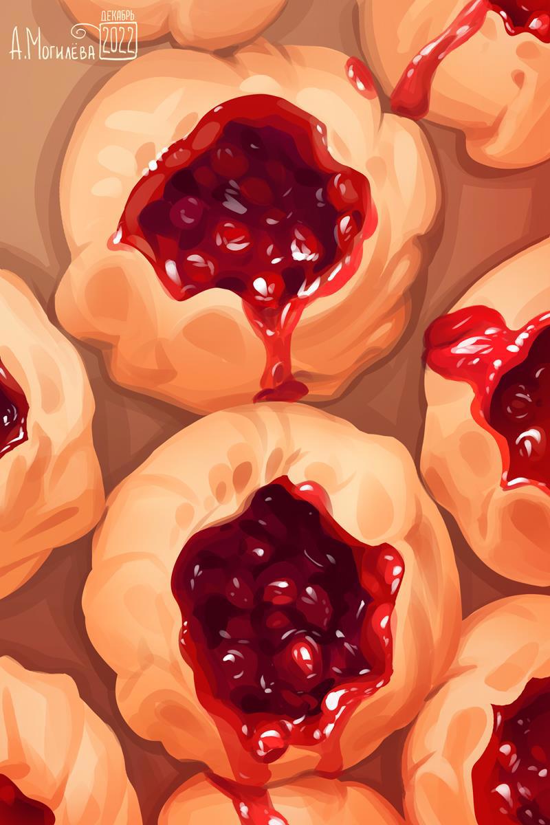 День2, открытые пирожки с брусникой (может кто-то знает, как они правильно называются? А то я только готовить и рисовать умею), 1ч.40мин.