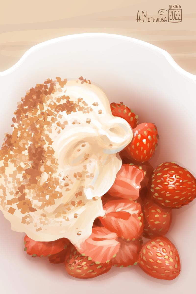 . Цветы рисовать легче, чем сладости. Сладости рисовать легче, чем вторые блюда. А пресловутый час выдержать выдержать так и не удалось: ну как бросить рисунок, если он ещё не выглядит съедобным? Приходилось заканчивать)