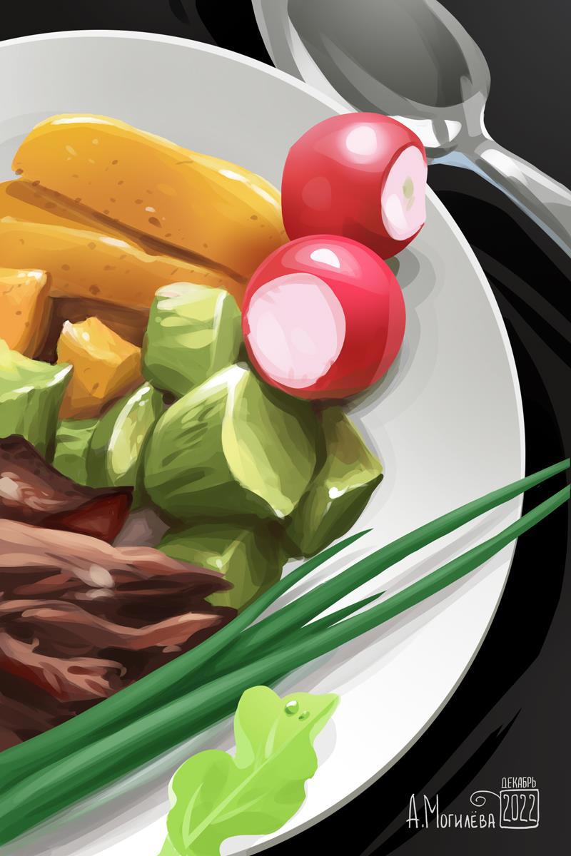 Автор: Могилёва АннаНа этой неделе меня потянуло на эксперименты с едой. Дело оказалось сложным, но увлекательным. Правда, когда рисуешь, постоянно тянуло что-нибудь сожрать