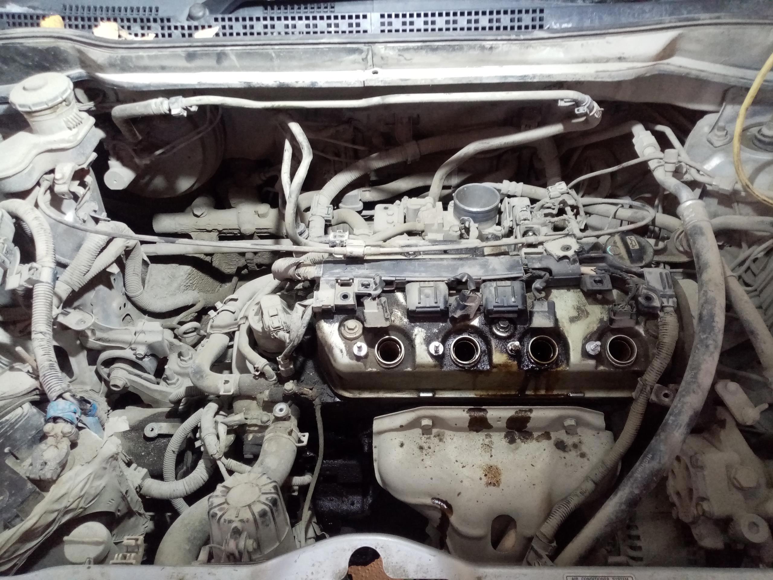 А сейчас готовьтесь, я расскажу вам об инженерном гении Хонды. Держитесь за стул крепче. Держитесь? Чтобы открыть верхнюю крышку ГРМ надо снять клапанную крышку. Ага. И это на многих моторах с одним распредвалом так. Хотите оценить состояние ремня перед или после покупки автомобиля? Покупайте прокладку клапанной крышки и сальники свечных колодцев. Потому что без этого туда не залезть.