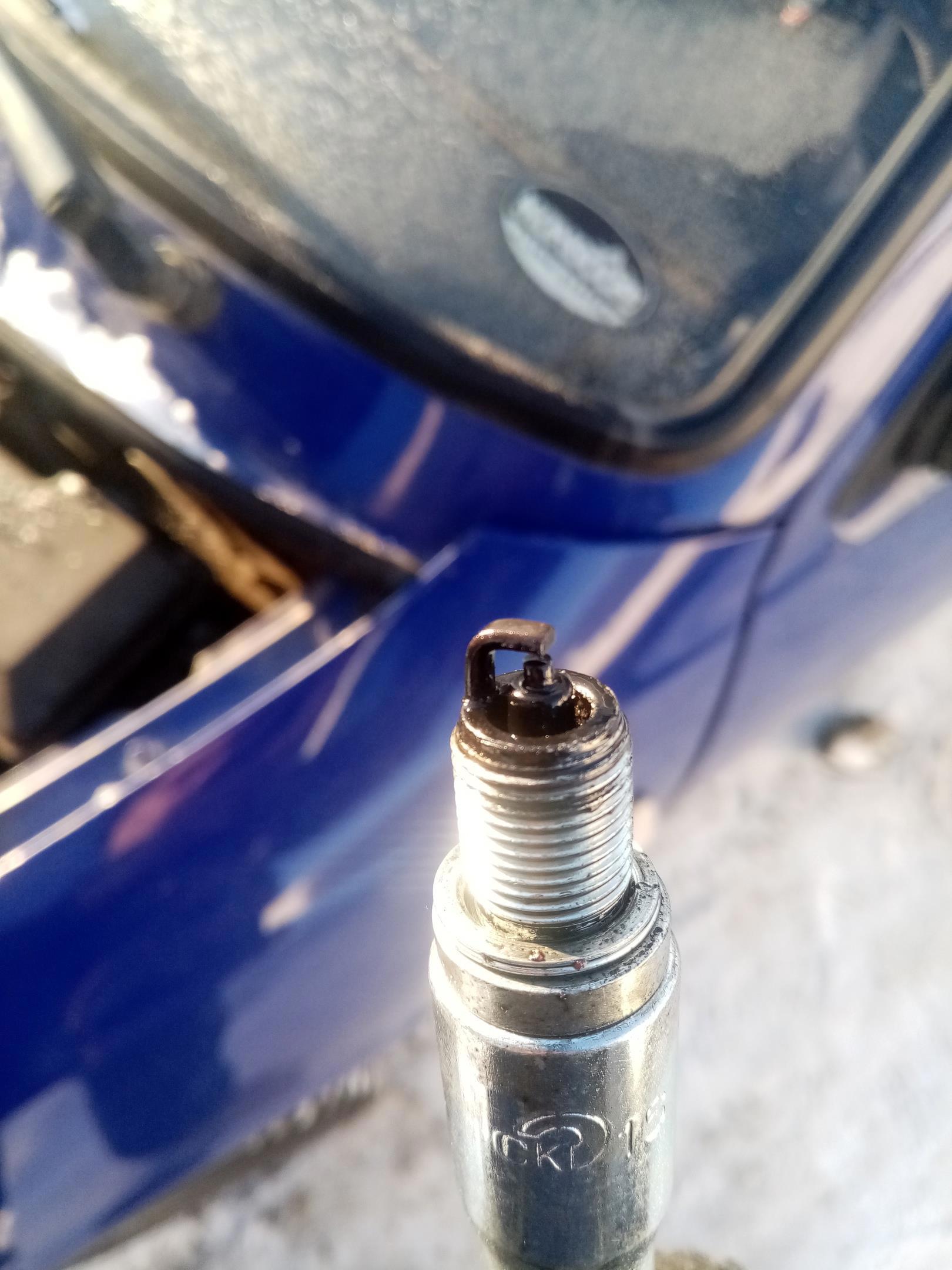 Плохо видно, но на ней капли бензина. Тоесть, заливает просто люто. Почесал репу, написал настройщику. Он сразу спросил: "дроссель приоткрыт?", и тут-то я всё понял. На приоткрытом дросселе машина уже льёт топлива значительно больше, чем на хх. Закрыл дроссель, поставил свечи Бриск с 3я контактами, вроде бы всё стало норм. Даже обороты холостого хода почти не выпендриваются.
