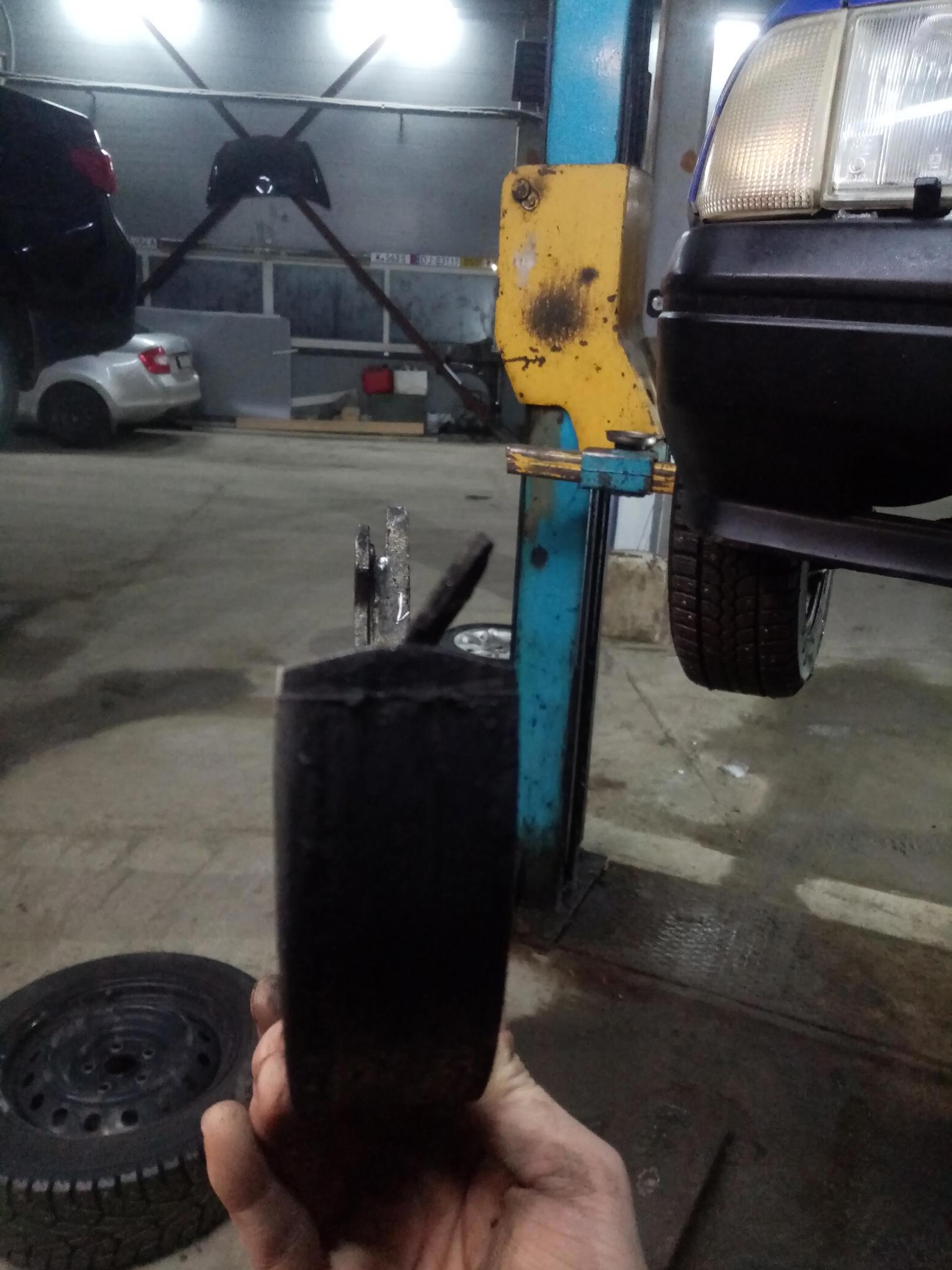 Ещё случай интересный приключился. Приехала Киа Шума с грохотом спереди. Оказалось, отломился нижний шар на стойке стабилизатора. Стойки установлены месяц назад. Начали вникать. Верхний шар на стойке практически не шевелился, что вызвало отрыв нижнего шара, так как стойка не шевелилась свободно и работала на излом. Проверяйте шаровые соединения стоек стабилизатора перед установкой: они должны быть тугими, но не должны закусывать.
