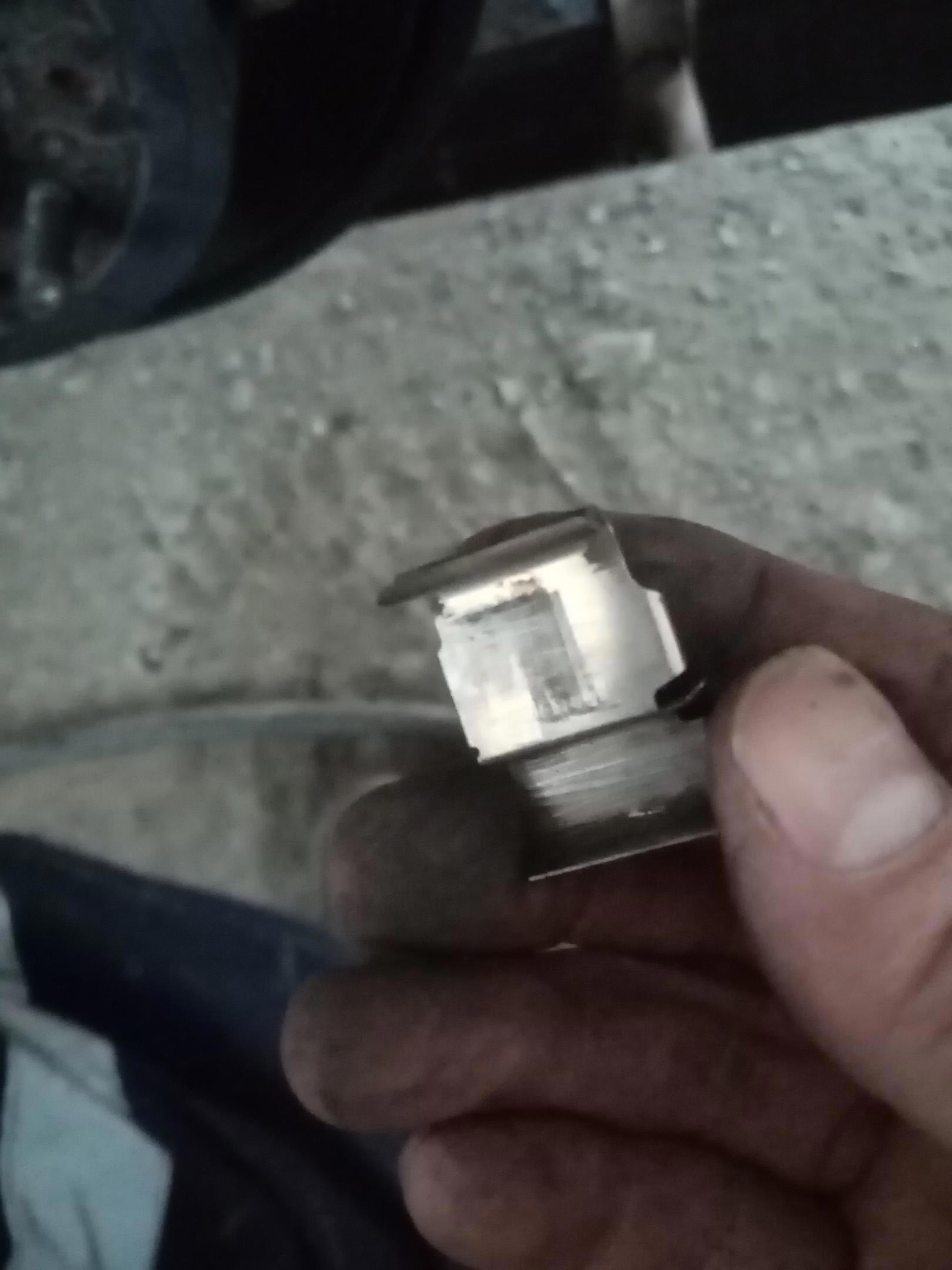 Свеча зажигания, вынутая из мотора Киа Рио 2006 года. Кто-то её старательно откручивал и провернул грани, куда не обращались везде их посылали. Наши мотористы свечку выкрутили. Для операции потребовалось 3 руки: 2 крутят свечной ключ (хорошая головка на 16 с удлиннителем и воротком), ещё одна стучит по воротку сверху молотком. Иначе не вывернуть.