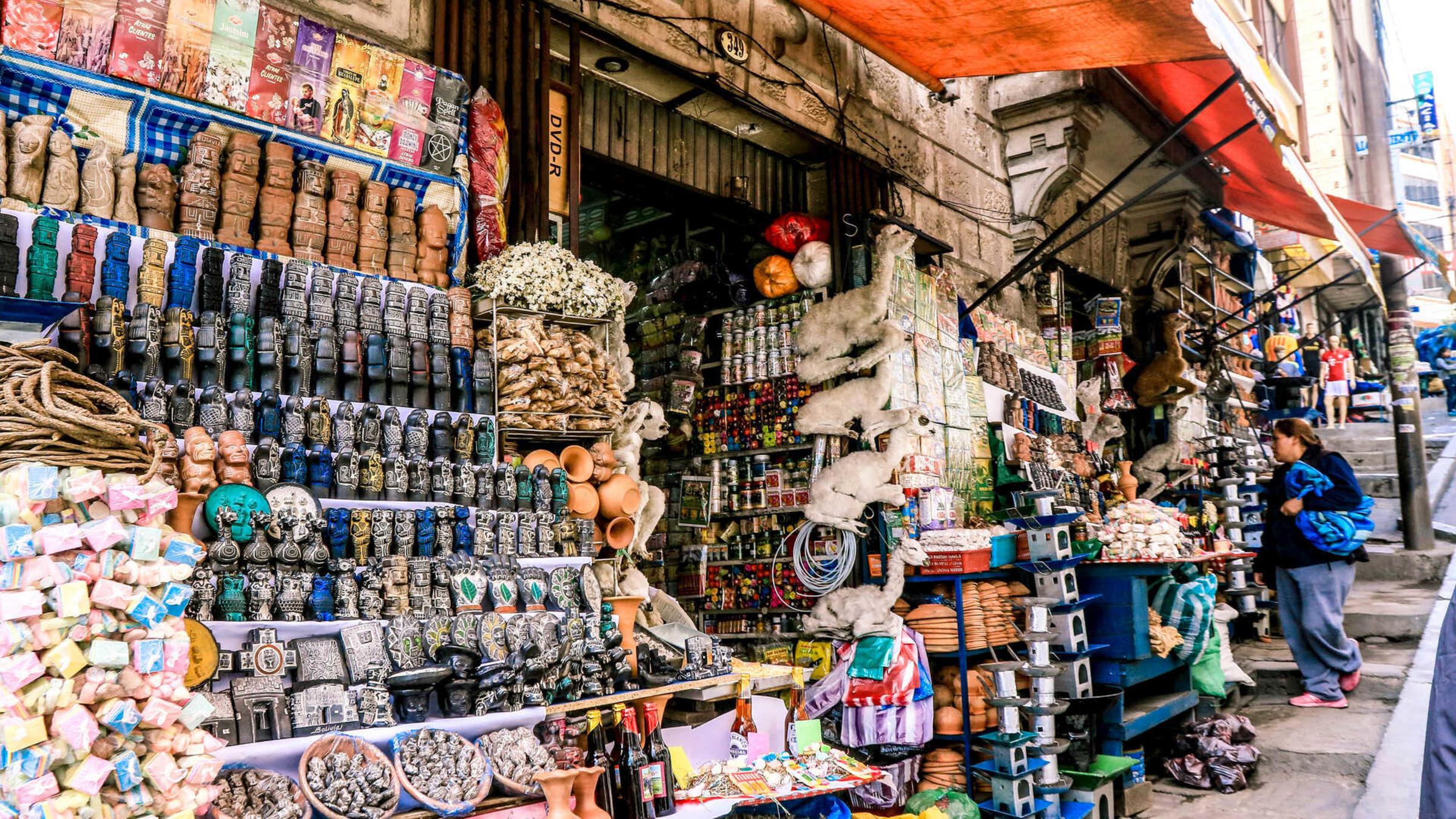 Mercado de las Brujas вполне себе существует и по сей день на улицах Хименес и Линарес, прямо в центре Ла-Паса. Обычный такой уличный рыночек, где положено до одури торговаться за амулеты, магические приблуды, обереги, сборы разных травок, ну или просто за колоритные сувениры — статуэтки, вещи из шерсти ламы, серебро...