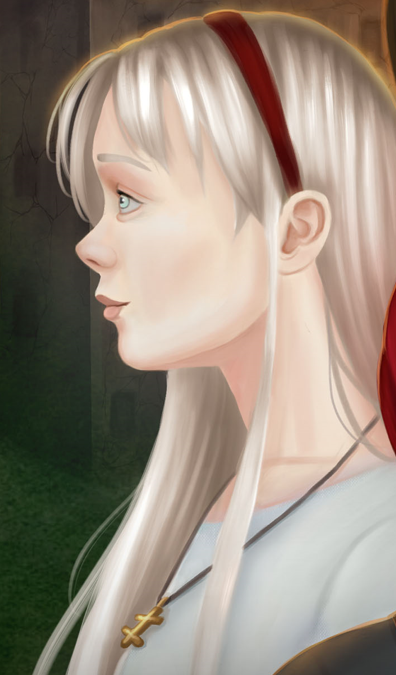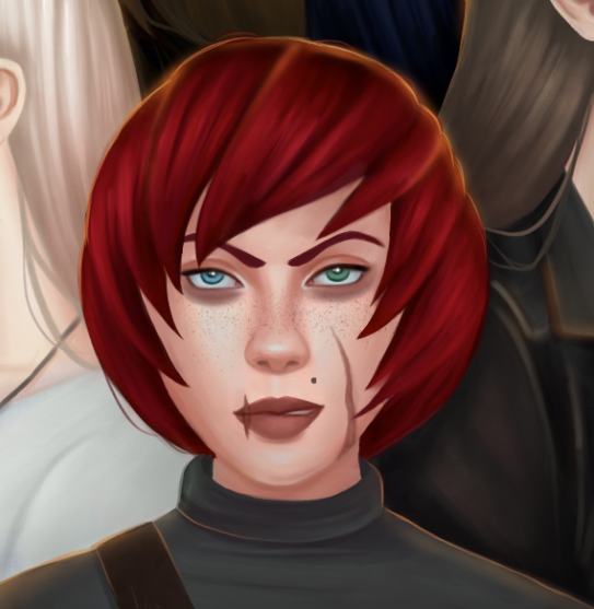 Прошлое девушки туманно. Известно лишь то, что ей 23 года, она наёмница и выскочка. Наглая рыжая бестия, которая никогда не обратится на "Вы" и будет выжимать выгоду даже из самой патовой ситуации. Из-за гетерохромии глаз вынуждена прикрывать один глаз челкой и обходить стороной церковные земли.