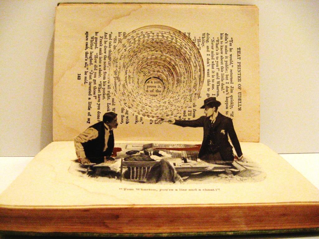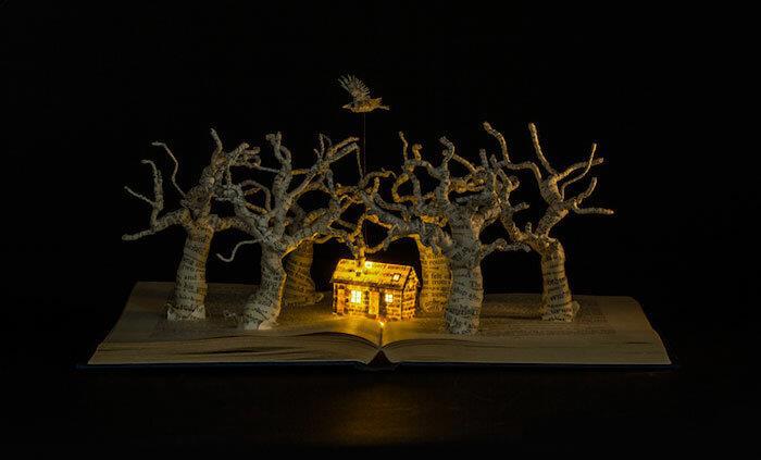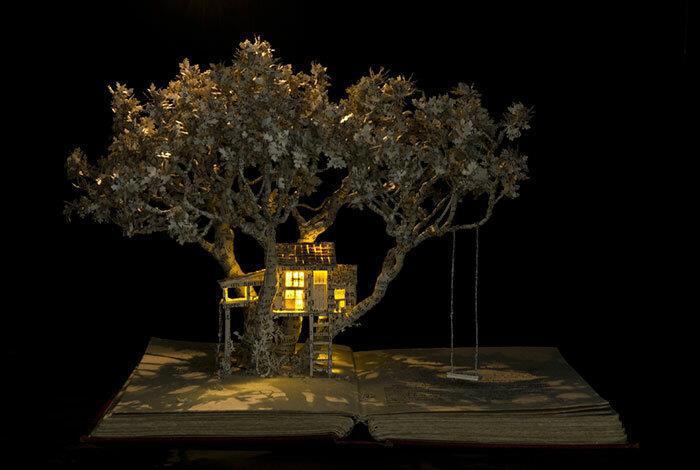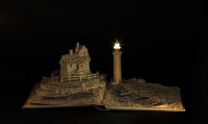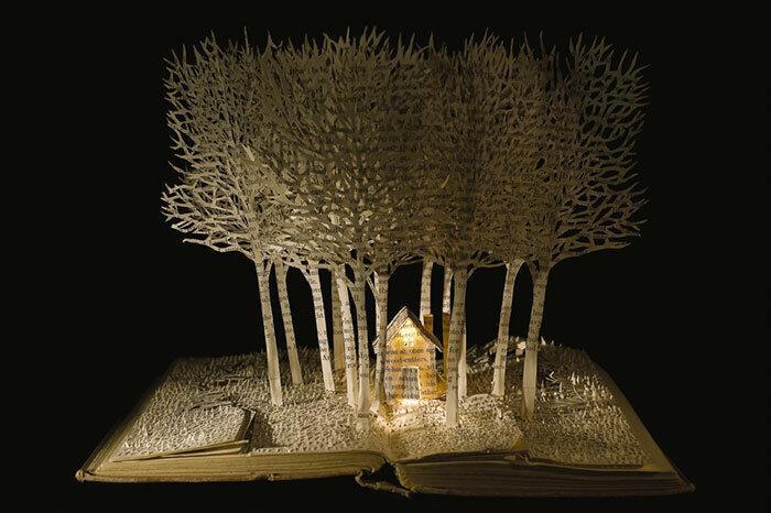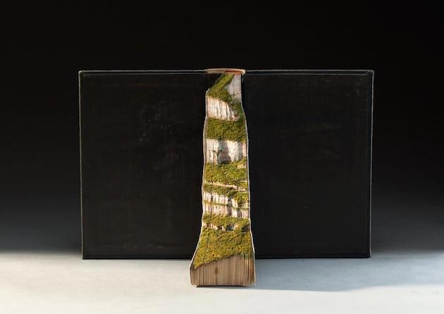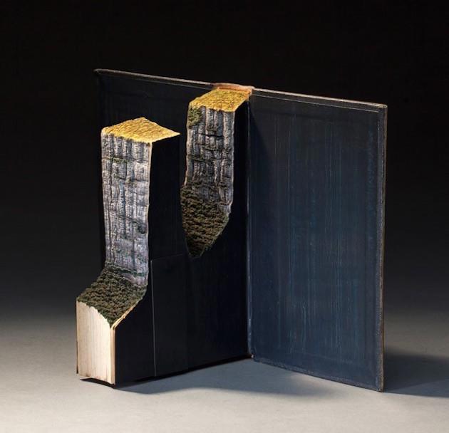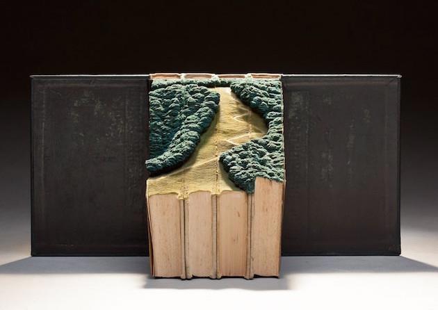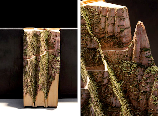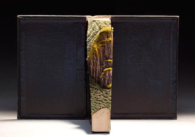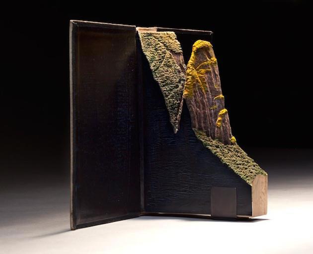 известен своей способностью превращать книги в современные произведения искусства. Используя пескоструйную машину, художник из Монреаля вырезает на обложках и страницах книг скульптурные пейзажи, которые кажутся прямиком из сборника рассказов.