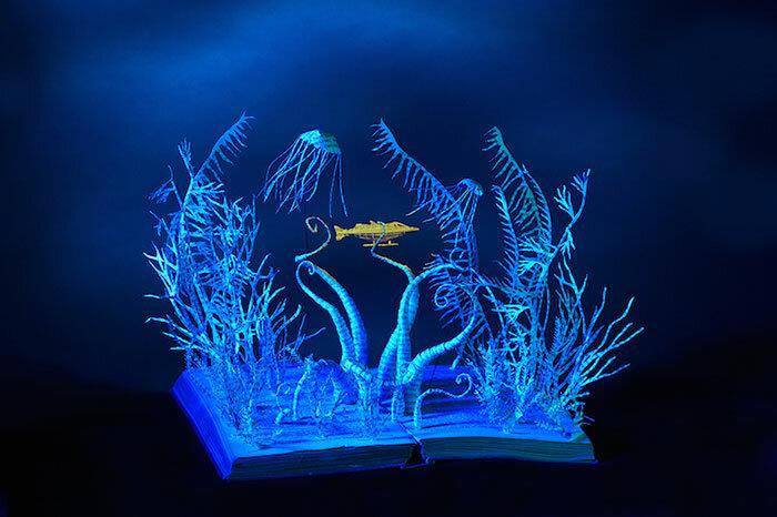 Вдохновившись тем или иным сюжетом, она с помощью скальпеля и клея создает потрясающие фантастические трехмерные миры.