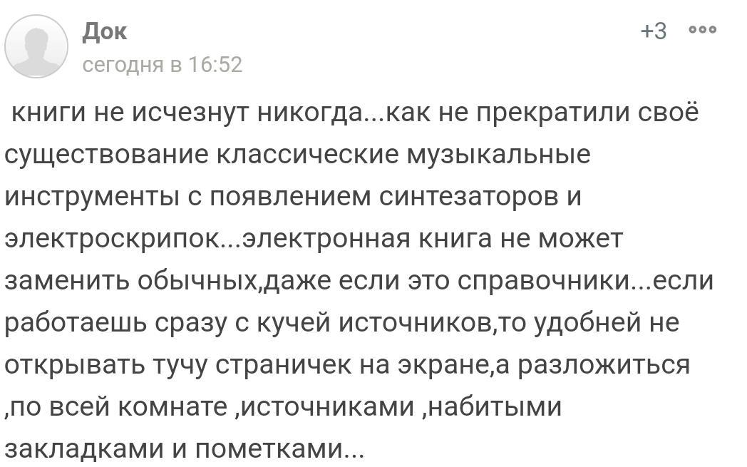 N.B. Печатные книги постепенно исчезают из нашей жизни, как массовое явление. Мне Книгу жалко. Это как ностальгия по ушедшей эпохе для меня. Но это явление есть результат прогресса. И остановить его невозможно. Ну разве, что убить прогресс и впасть в стагнацию. Мне это кажется еще более худшим развитием сценария. Давайте же будем надеяться на то, что человечество выберет ту дорогу своего развития, которая все же приведет нас к более лучшей жизни, как духовно, так и материально.