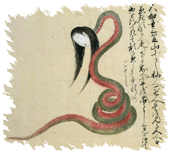Вопреки устоявшемуся в западноевропейском и американском кино образу вампиров, большинство вампиров рептилии – драконы(ящеры), змеи и вот даже черепахи. Одним из таких существ является нурэ-онна - змея кровопийца. Её можно встретить на берегах озёр и рек. Нурэ-онна буквально – мокрая женщина. Как и другая водяная нечисть нурэ-онна поджидает людей на берегу. Причем берег может быть, как речной или озерный, так и морское побережье. А это говорит о том, что существо обитает и в море, и в пресноводных водоемах. Легенды о нурэ-онна рассказывают о ее появлении в префектуре Ниигата и в Фукусиме, а так же на побережье острова Кюсю.