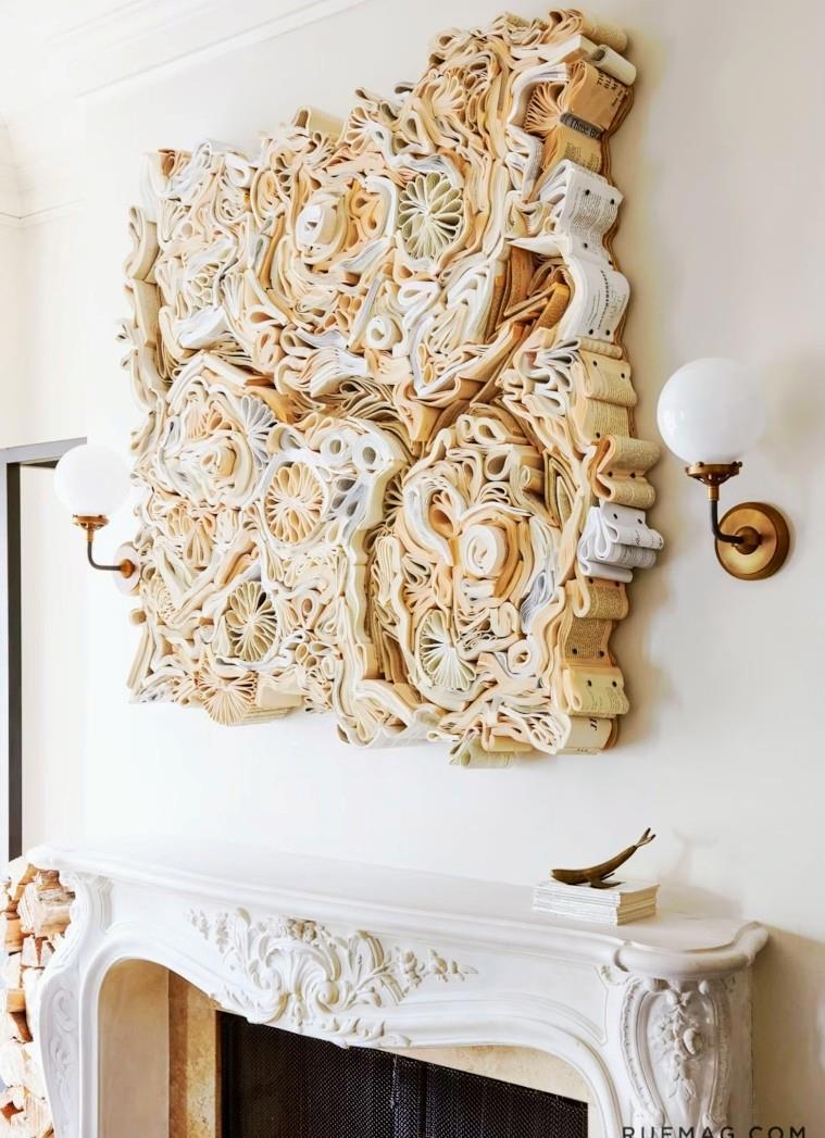 N.B. Я увидел, перевел и привел эту публикацию здесь, добавив большое количество фотографий. Но у меня осталось какое-то двоякое чувство от этого. С одной стороны приведены примеры интересных артистических инсталяций. С другой стороны, мне жалко, что бумажные книги умирают. Это грустно. Еще более грустно видеть, когда книги просто уничтожаются. Так что дать вторую жизнь книге это хорошо.