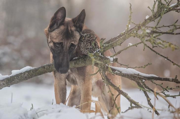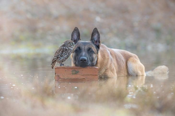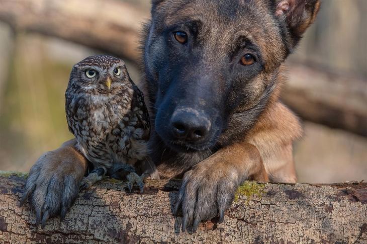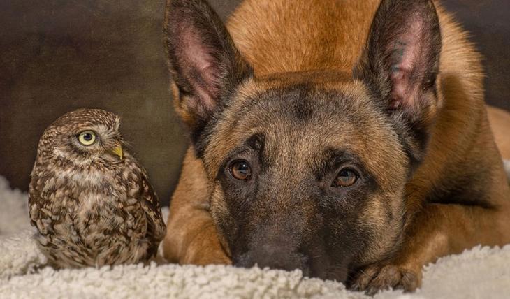 10 невероятно трогательных фотографий о дружбе совы и собаки
