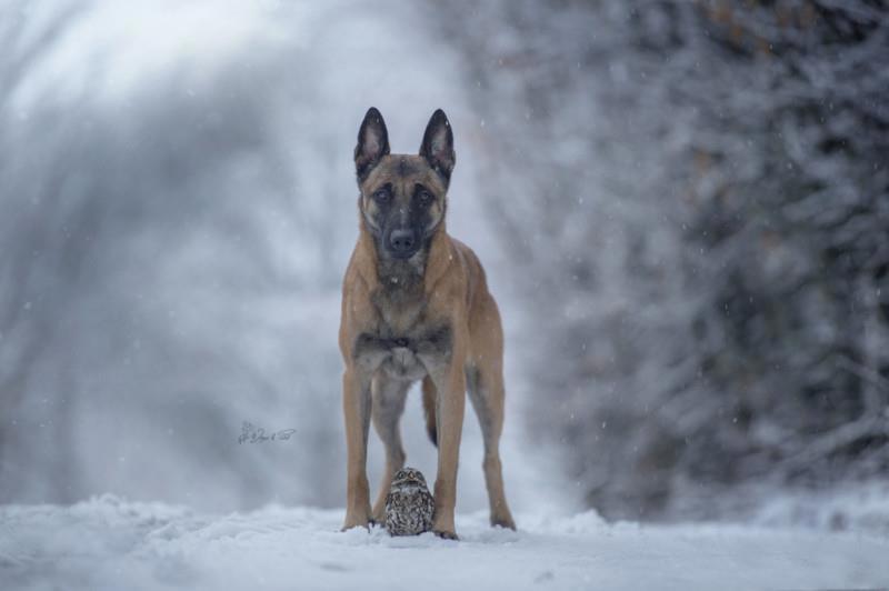 Невероятная дружба совёнка Наполеона и бельгийской овчарки Инго.