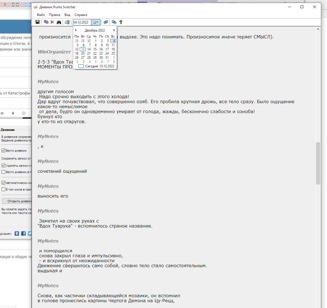 И вот это стало в моем случае спасением. Конечно, текст был в ужасном виде, этот Дневник сохраняет так, как вы печатаете, одна буква тут, другая там, стираете полслова и дописываете, бросаетесь править два абзаца назад и затем перелетаете в концовку чтобы обновить диалог...