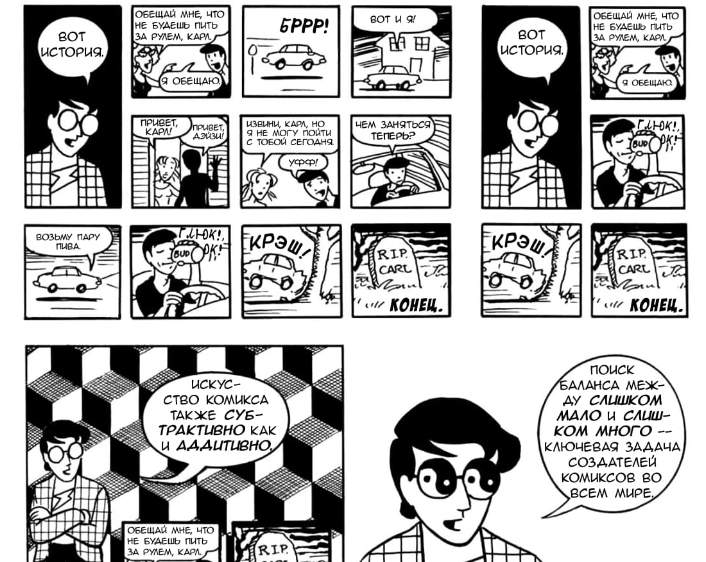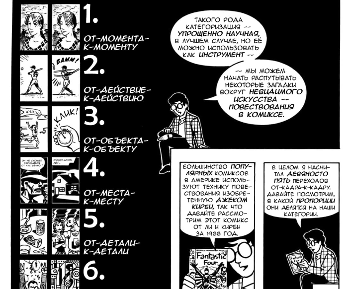 Очень рекомендую всем, кто пишет, даже если вы не любите комиксы. Там очень много интересных моментов рассказывается о том, как работает наш мозг, как он воспринимает события и нарратив, время и движение.