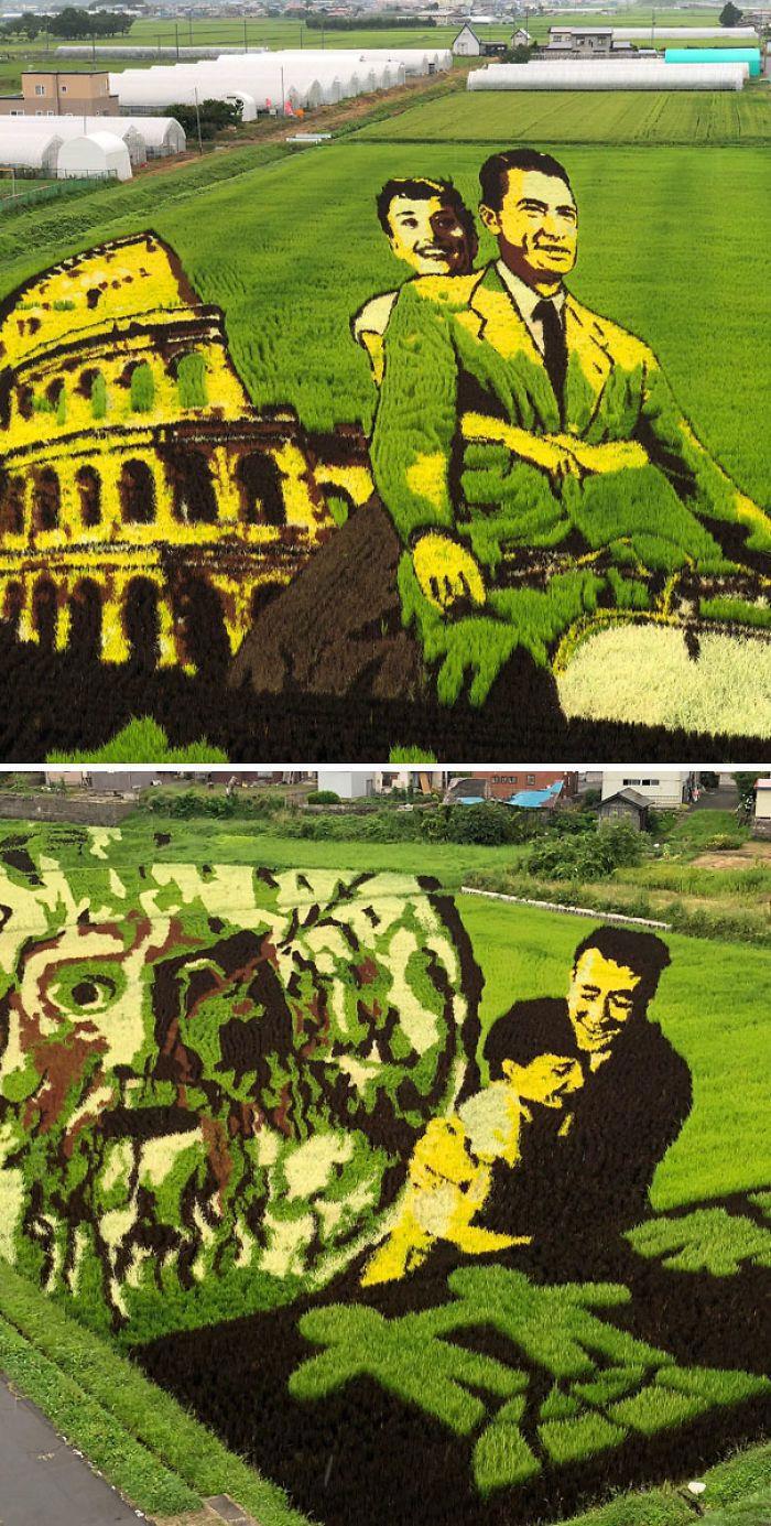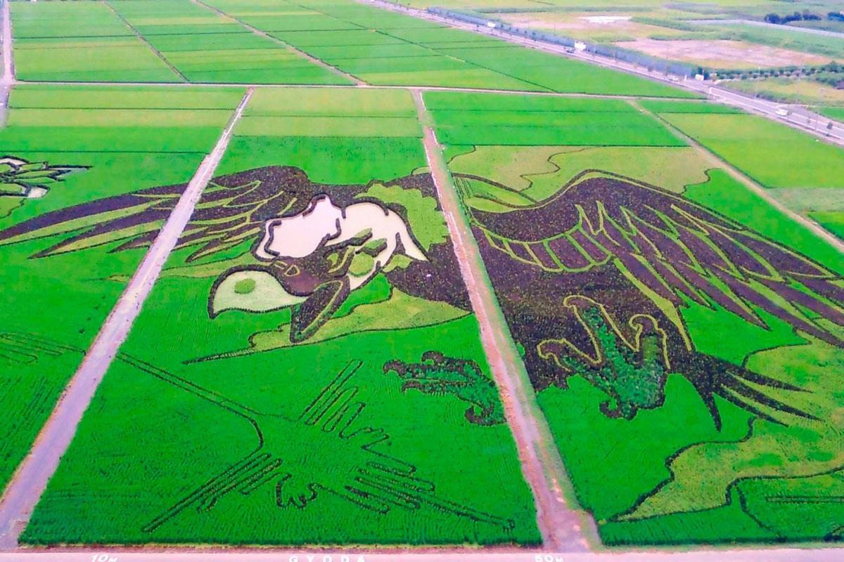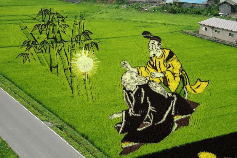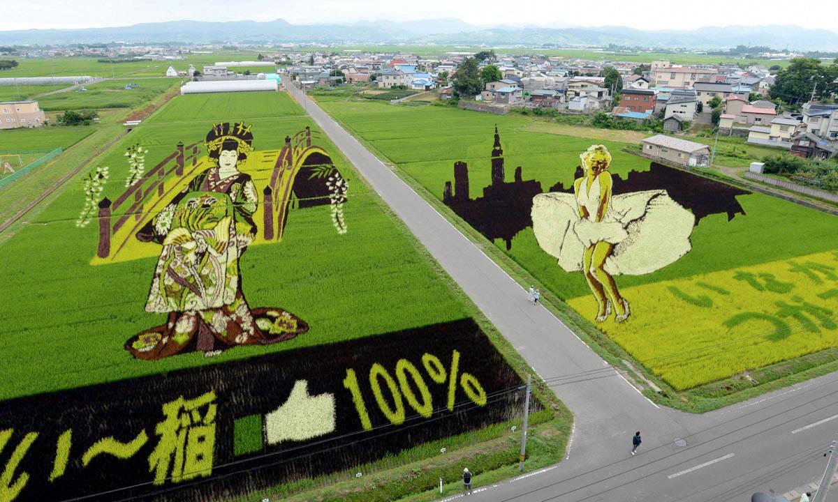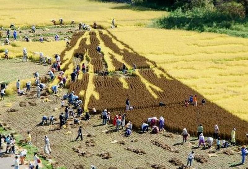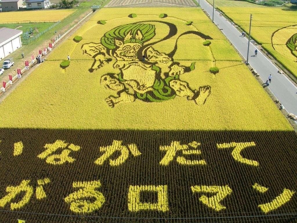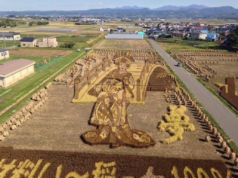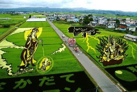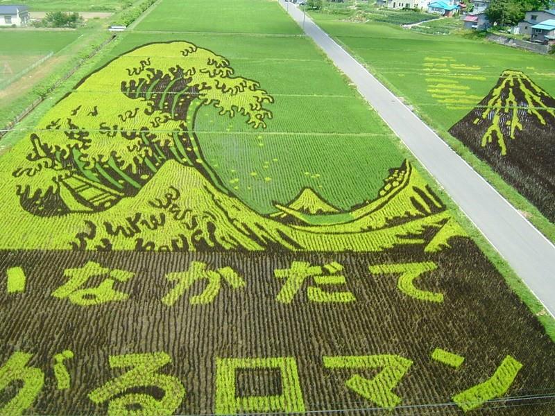 В 1993 году жители японского села Инакадате префектуры Аомори с целью привлечения туристов придумали художественное оформление обычных рисовых полей.