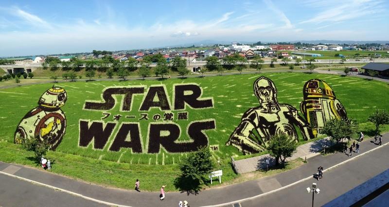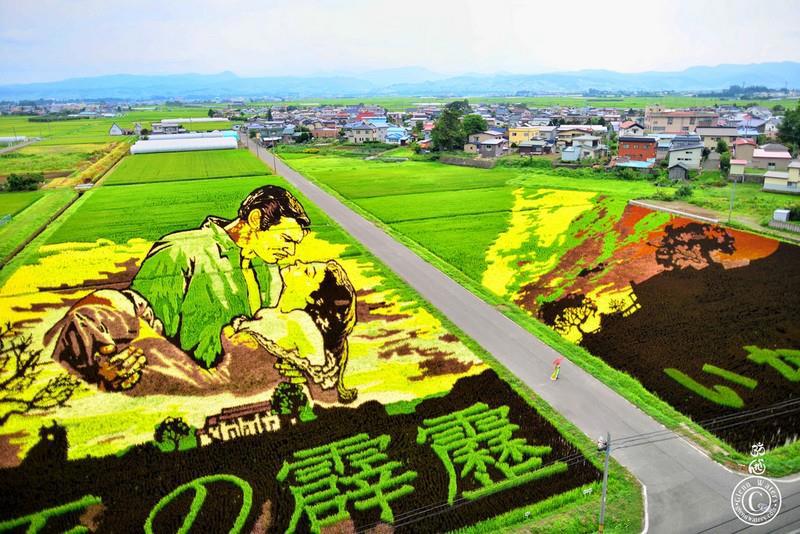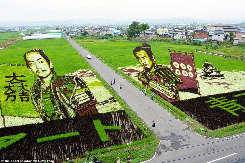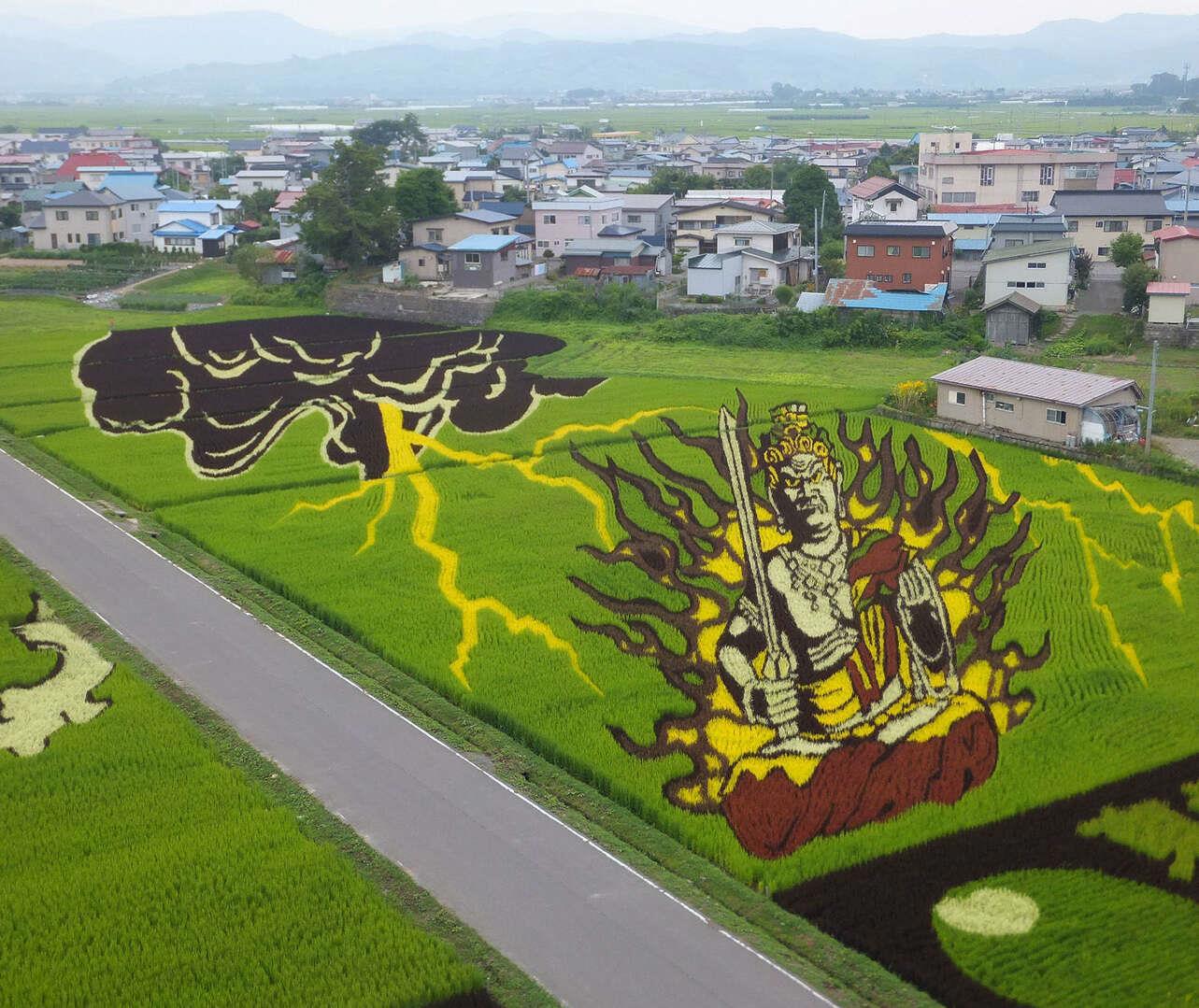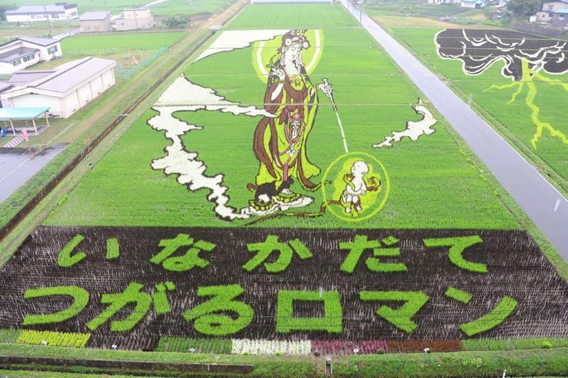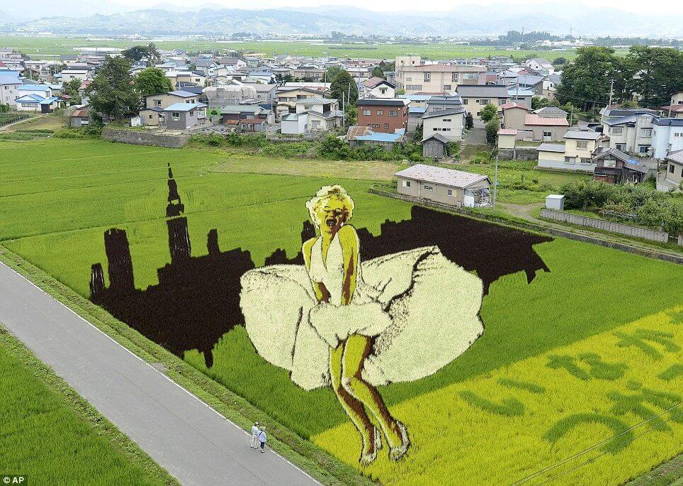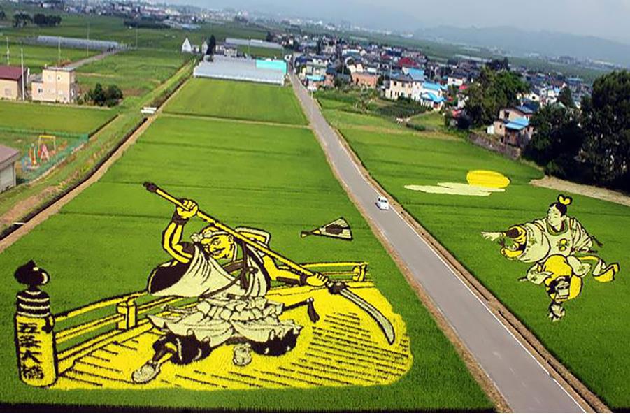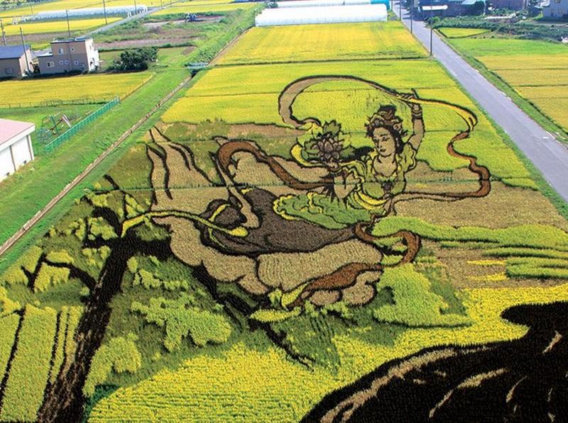 В 1993 году жители японского села Инакадате префектуры Аомори с целью привлечения туристов придумали художественное оформление обычных рисовых полей.