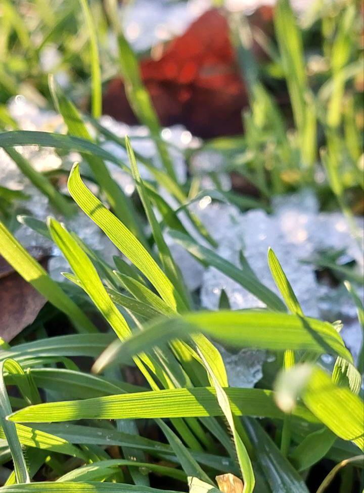 Снег, обласканный каждой травинкой,