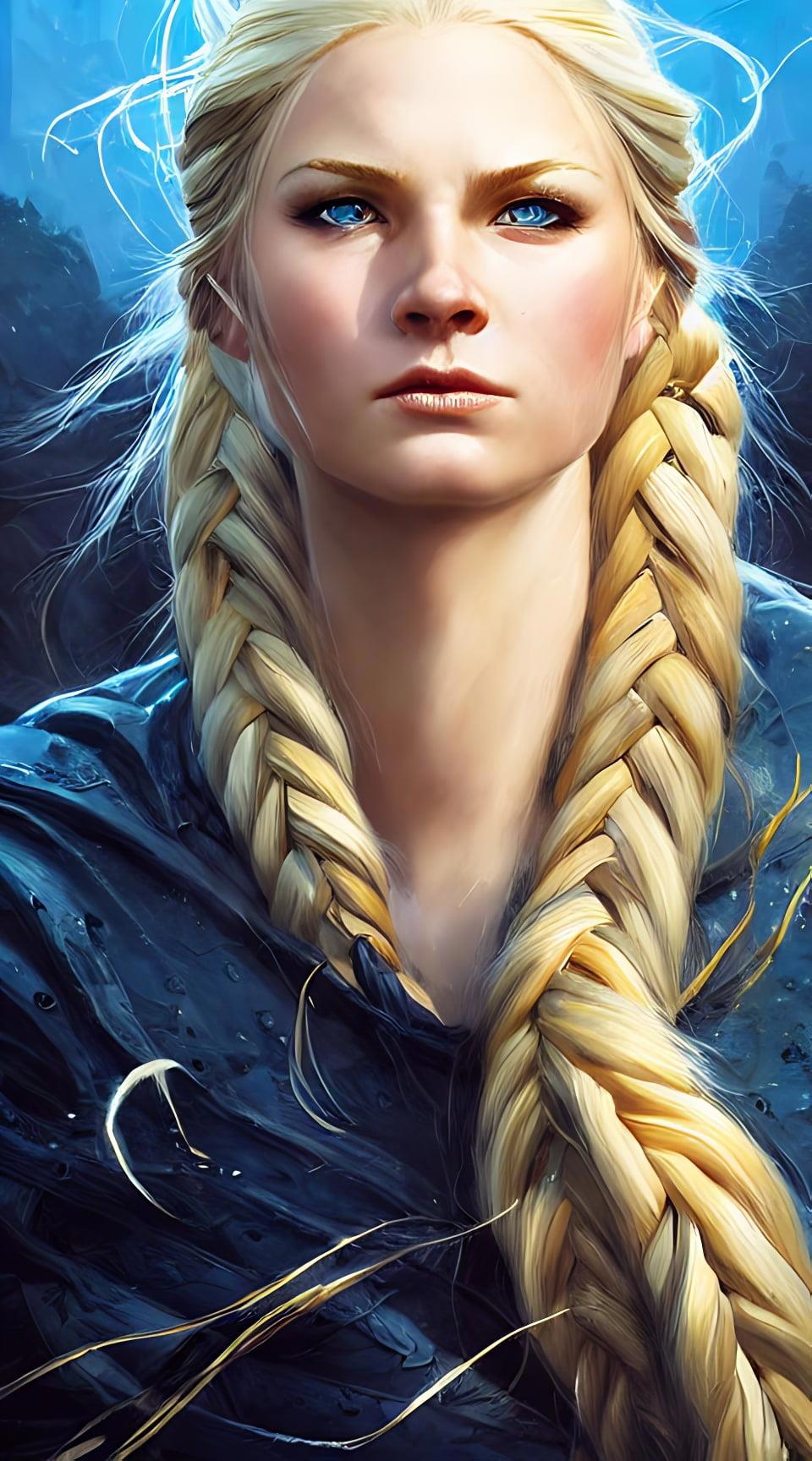 Вообще без редактуры, ибо не так важна. Волосы в чёрный пусть воображение покрасит, я добиться воронова крыла от нейросети не смогла, как и в случае с Кледом, но там мало надо было докрашивать. А эта... Нужное впечатление производит - и ладно. Если бы я могла, я бы срисовала её с молодой Кирсти Элли, а Аину с молодой Дианы Крюгер, но увы, Лексика берёт только текущий их вид и представляет в довольно карикатурном гротеске черт, так что не алло.