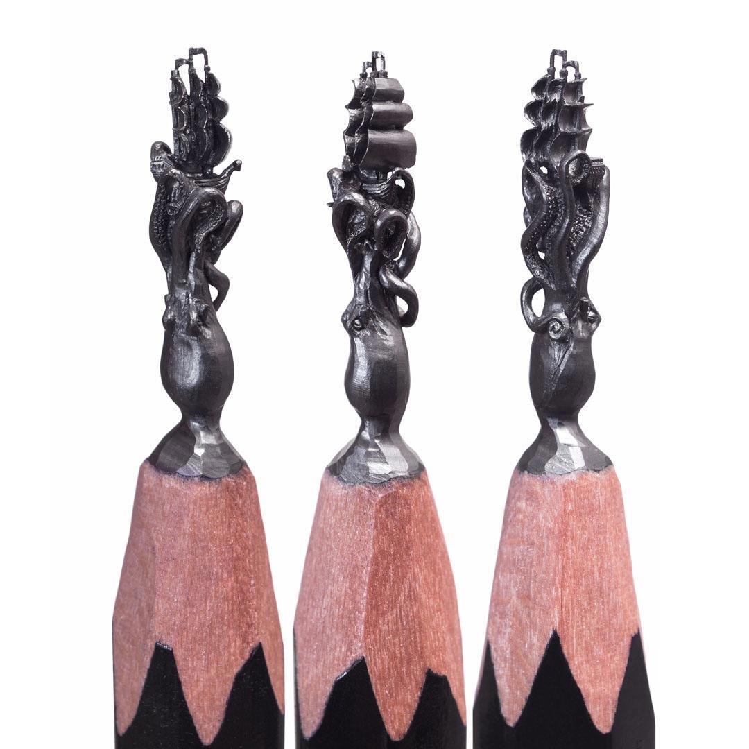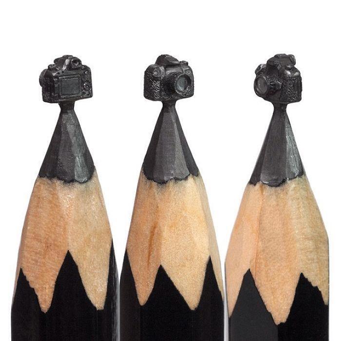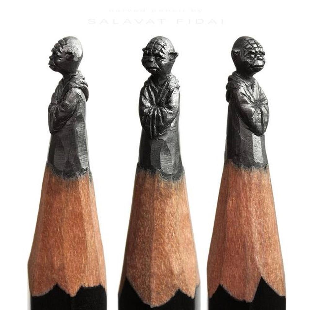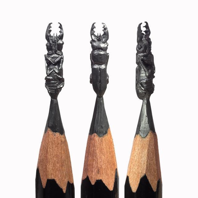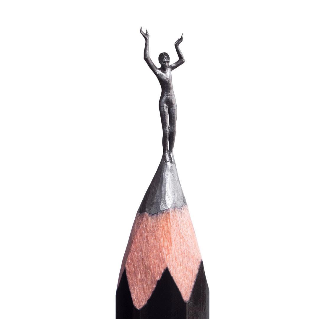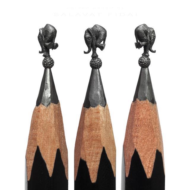 Лишь в 2014 году Салават пробует использовать в качестве материала для скульптур графитовые стержни карандашей. Материал диктует свои требования к размерам - на кончике карандаша получается даже не миниатюрная, а микроскульптура.