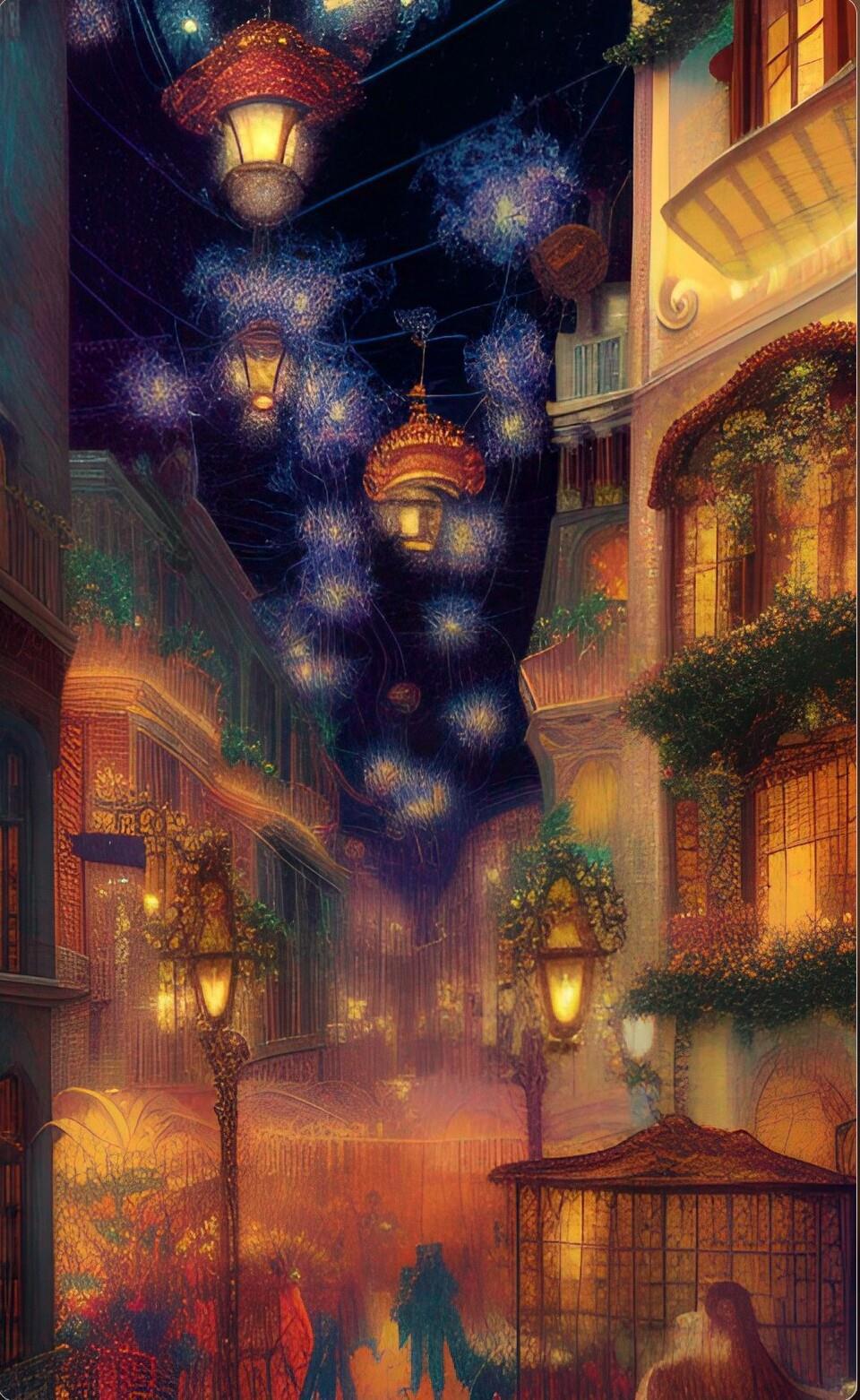 Бумажные светильники десятками мерцали на темных волнах словно звезды в ночном небе; в окнах домов, на мостах, под которыми проплывала лодка, мягким белым и желтым светом горели их собратья, висели гирлянды цветов и флаги Леонии - золотой лев на багряном поле.