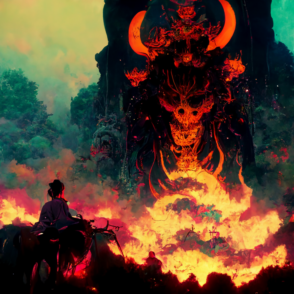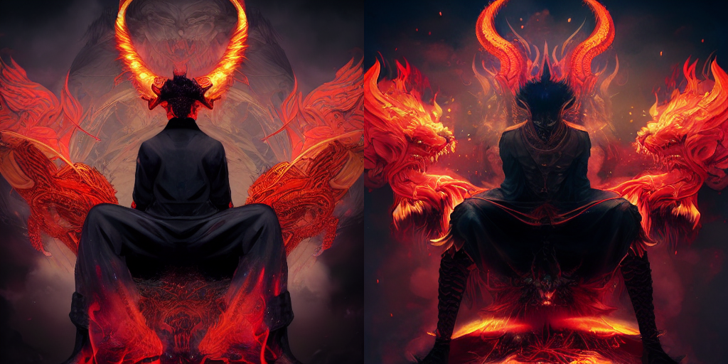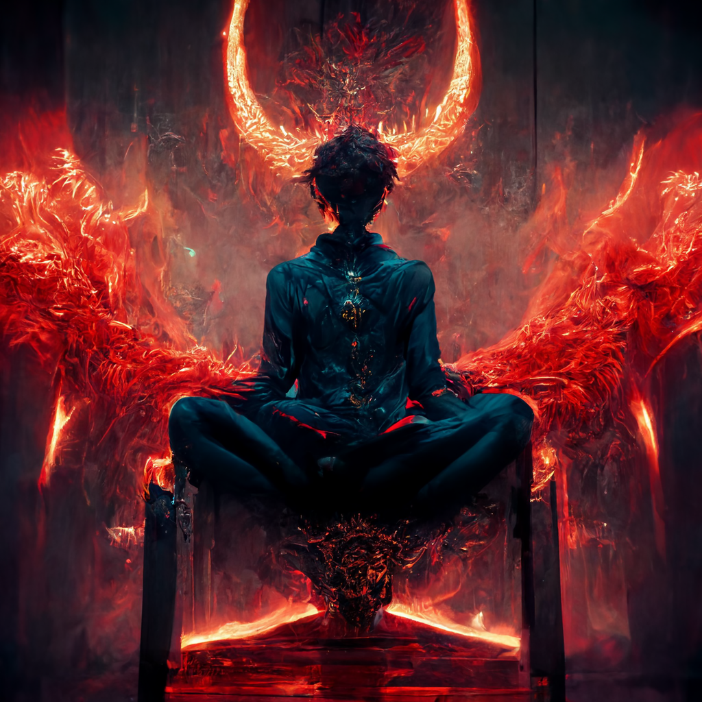 Больше пафоса богу пафоса. ГГ на троне убитого им дьявола инферно, да-да, сильно обгорел он (шучу к тексту картинка отношения не имеет, я ещё не написал их битву, просто очень уж пафосная и крутая картинка)