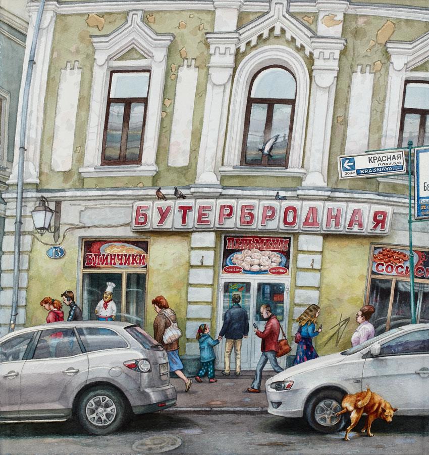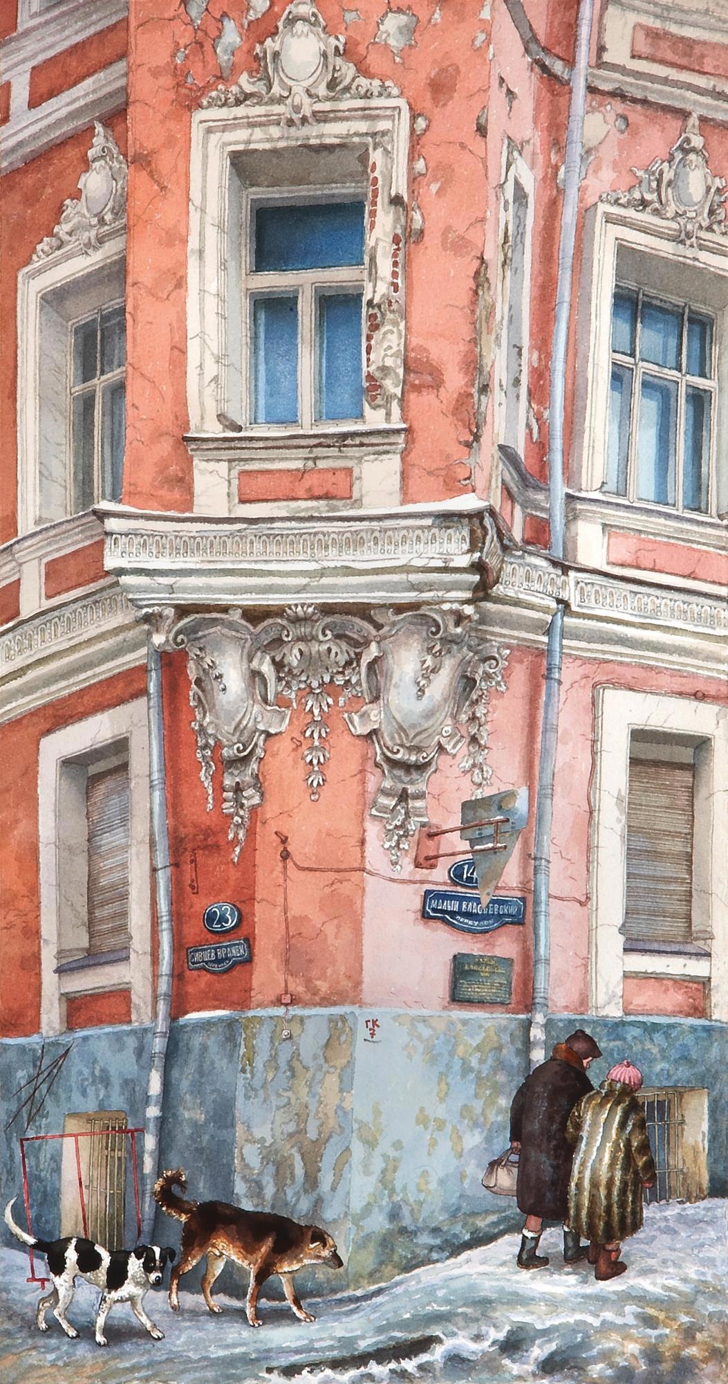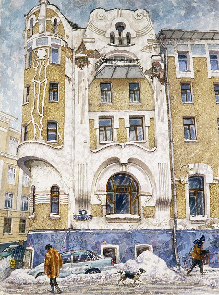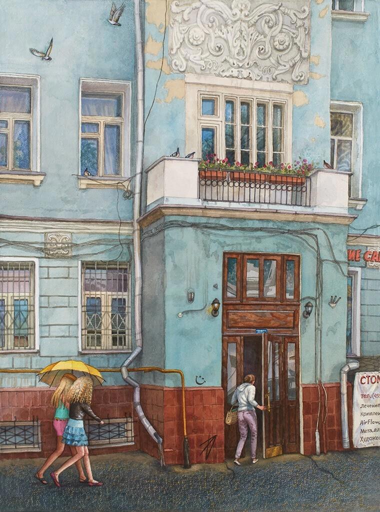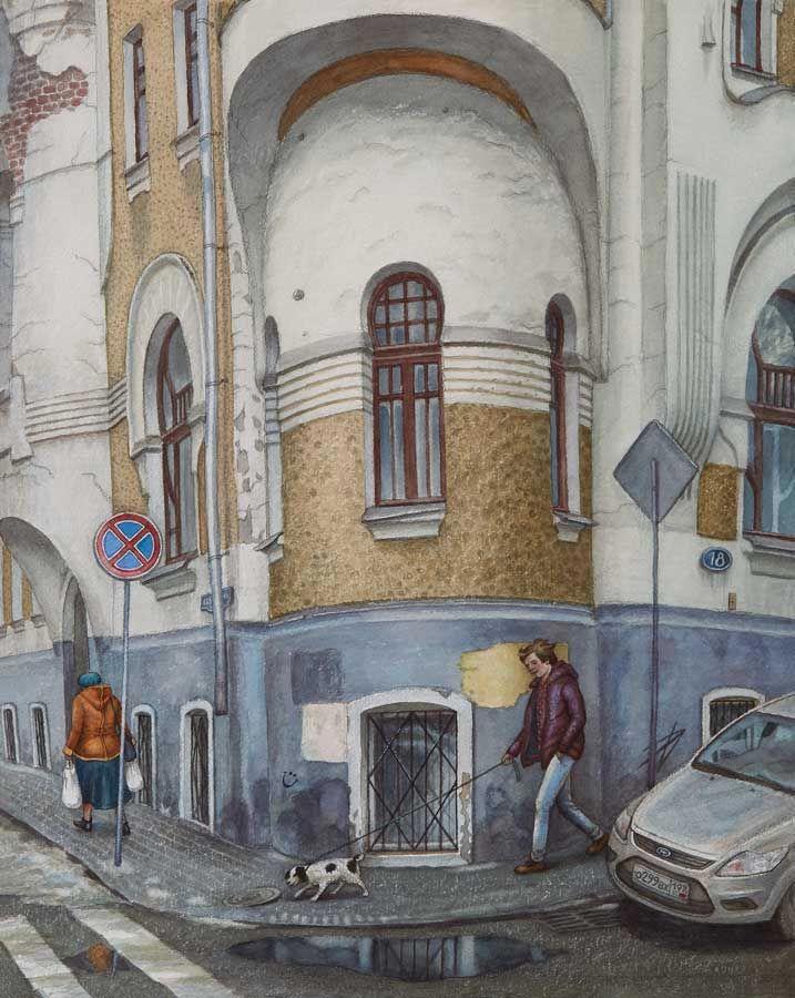 Сейчас же акварели и офорты Дергилёвой всё чаще попадают в подборки с заголовком «Москва, которой нет».Художница рисует не просто городские пейзажи, а настоящие портреты домов и улочек.