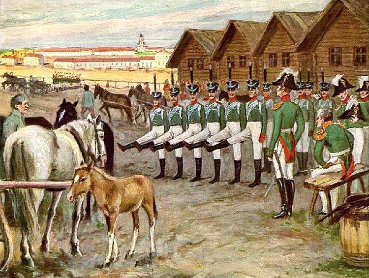 Реформа армии, громадные расходы на ведение войн, а потом и прекращение торговли с Англией из-за "континентальной блокады", привели финансы Российской империи в плачевное состояние. Бумажные деньги быстро обесценивались, а золотых и серебряных монет не хватало. На фоне всего этого ещё после Тильзитского мира император Александр часто задумывался о том, как содержать большую армию, не обрушивая экономику страны. Ему понравились идеи прусского генерала Герхарда Шарнхорста, бывшего с 1808 по 1810 годы военным министром и начальником Генерального штаба, об обучении населения основам военного дела и о всеобщей воинской обязанности. Вот только воспринял русский самодержец эти идеи через призму национального опыта, вспомнив про стрелецкие и казачьи слободы. Ему казалось, что если солдаты будут возделывать землю, как крестьяне, а в свободное от этой работы время проводить интенсивную военную подготовку, то получится и сохранить большую армию, и не повредить экономике. Он надеялся, что это позволит улучшить материальное положение нижних чинов и даст им возможность во время службы оставаться среди своих семейств.