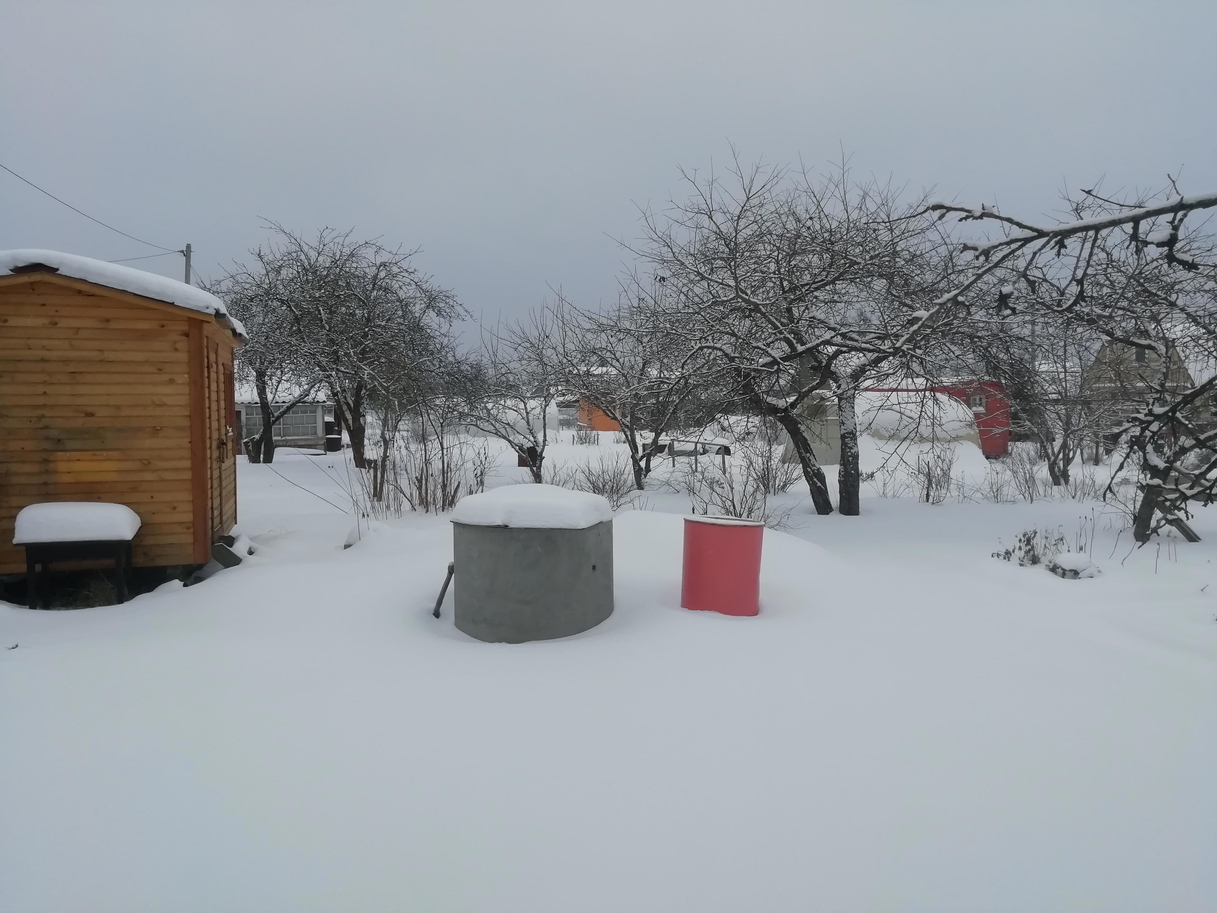 А в саду сейчас примерно так. Количество выпавшего снега можно оценить по слою его на столике: