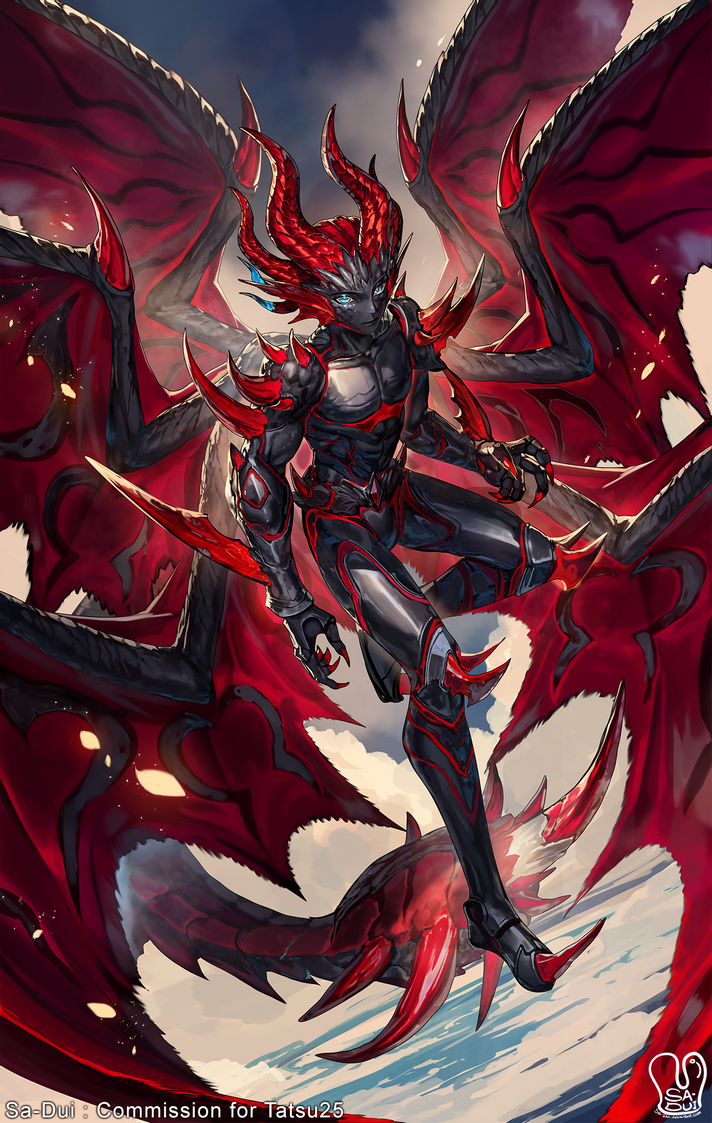 Но я продолжил поднимать и вскоре увидел фигуру. Туя которую я сначала принял за ангела и чуть не перекрестился. Это была фигура с шесть костлявыми крыльями без перьев и кожи, состоящей из блестящей черной кости. Само тело было тоже черным и приглядевшись, я понял, что это был скорее доспех, недели живое существо.