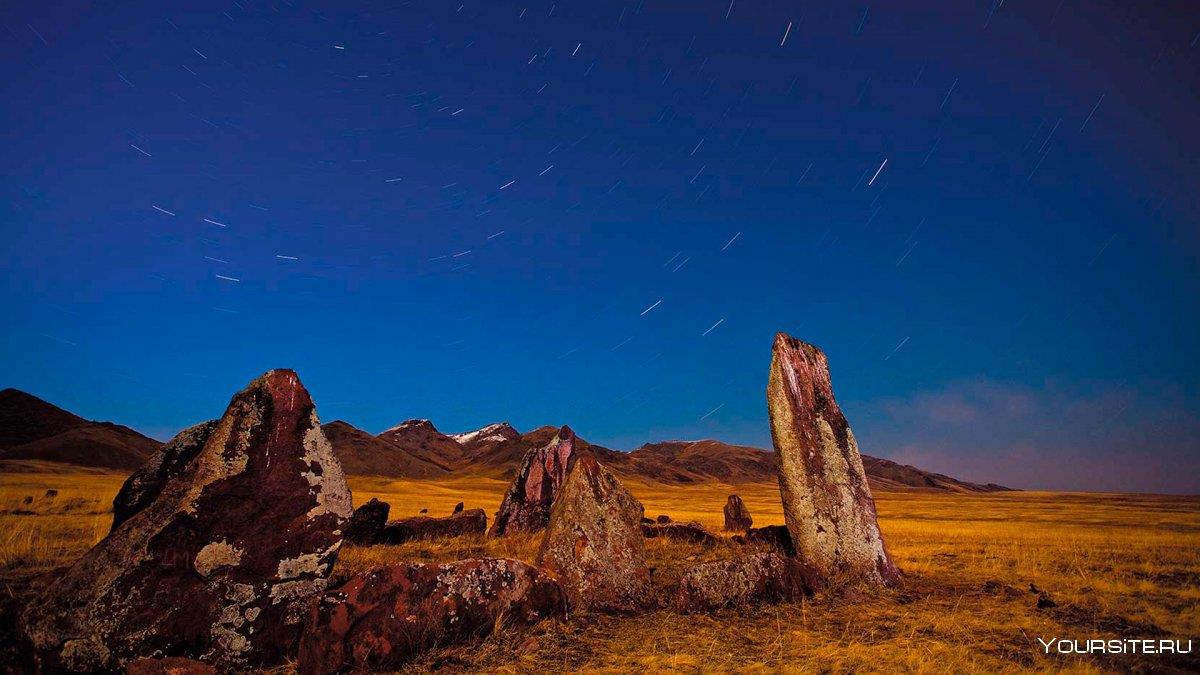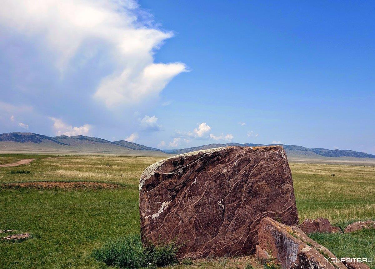 К этому времени солнце выжгло степь у подножия гор до желтизны, и на этом фоне выделялись многочисленные курганы, окруженные менгирами — высокими стоячими камнями. На этих плитах красноватого песчаника можно найти множество рисунков, выбитых как до нашей эры, так и в средневековье, и даже в начале двадцатого века. Николай говорил об этих рисунках, обещая показать, когда они подъедут поближе.