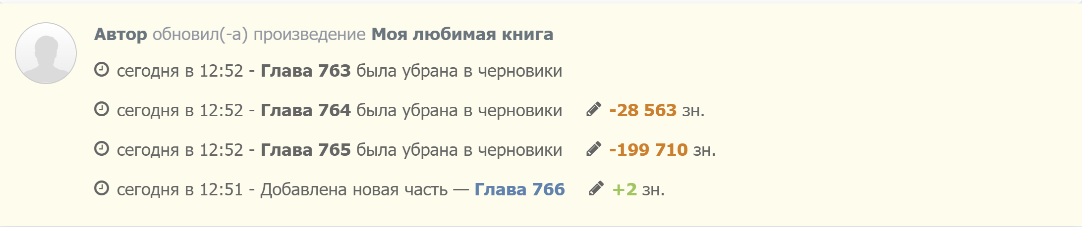 Теперь система будет автоматически группировать обновления, если они принадлежат одной и той же книге и идут подряд. У пользователя будет возможность раскрыть его и посмотреть подробней, если есть желание и интерес.