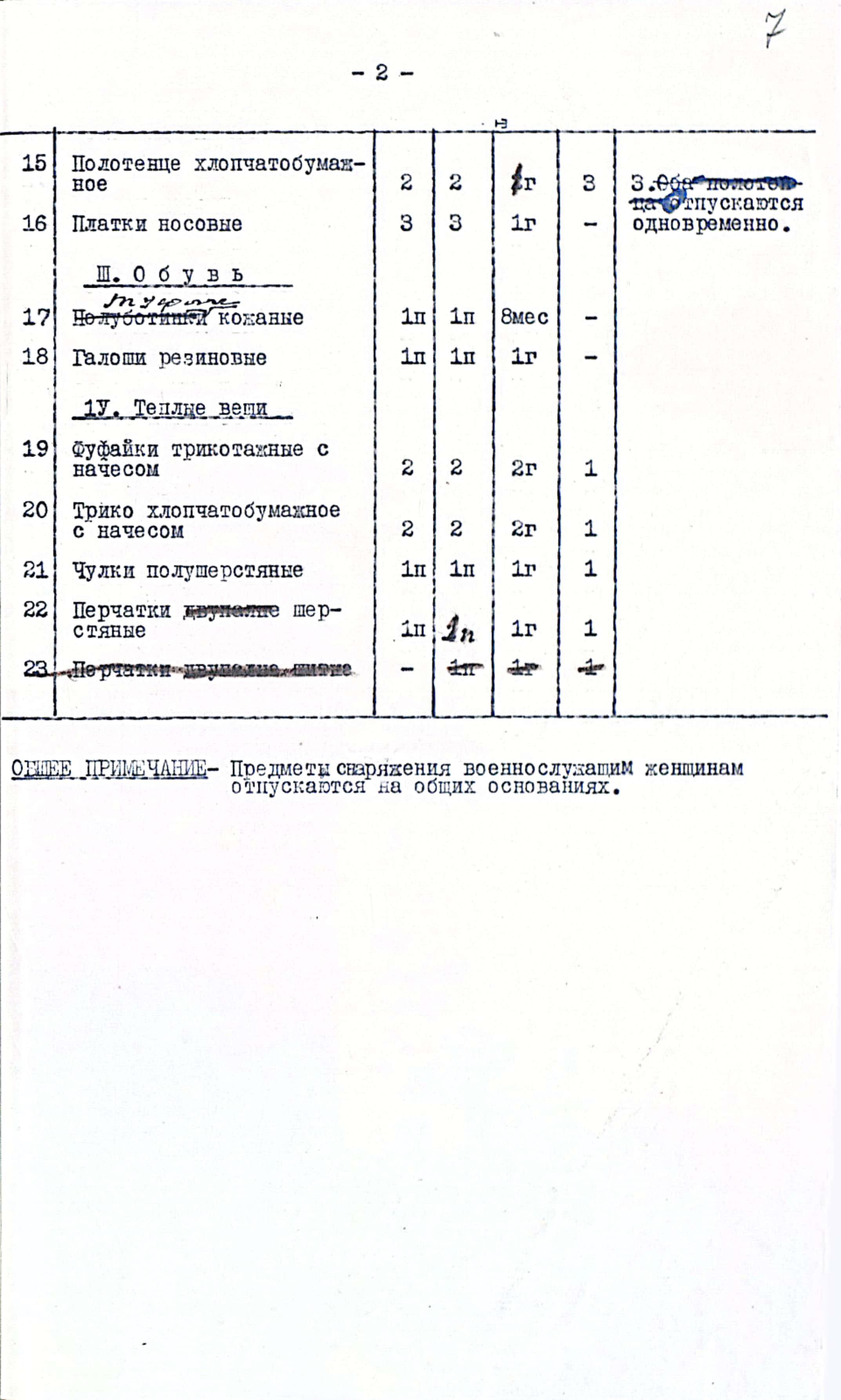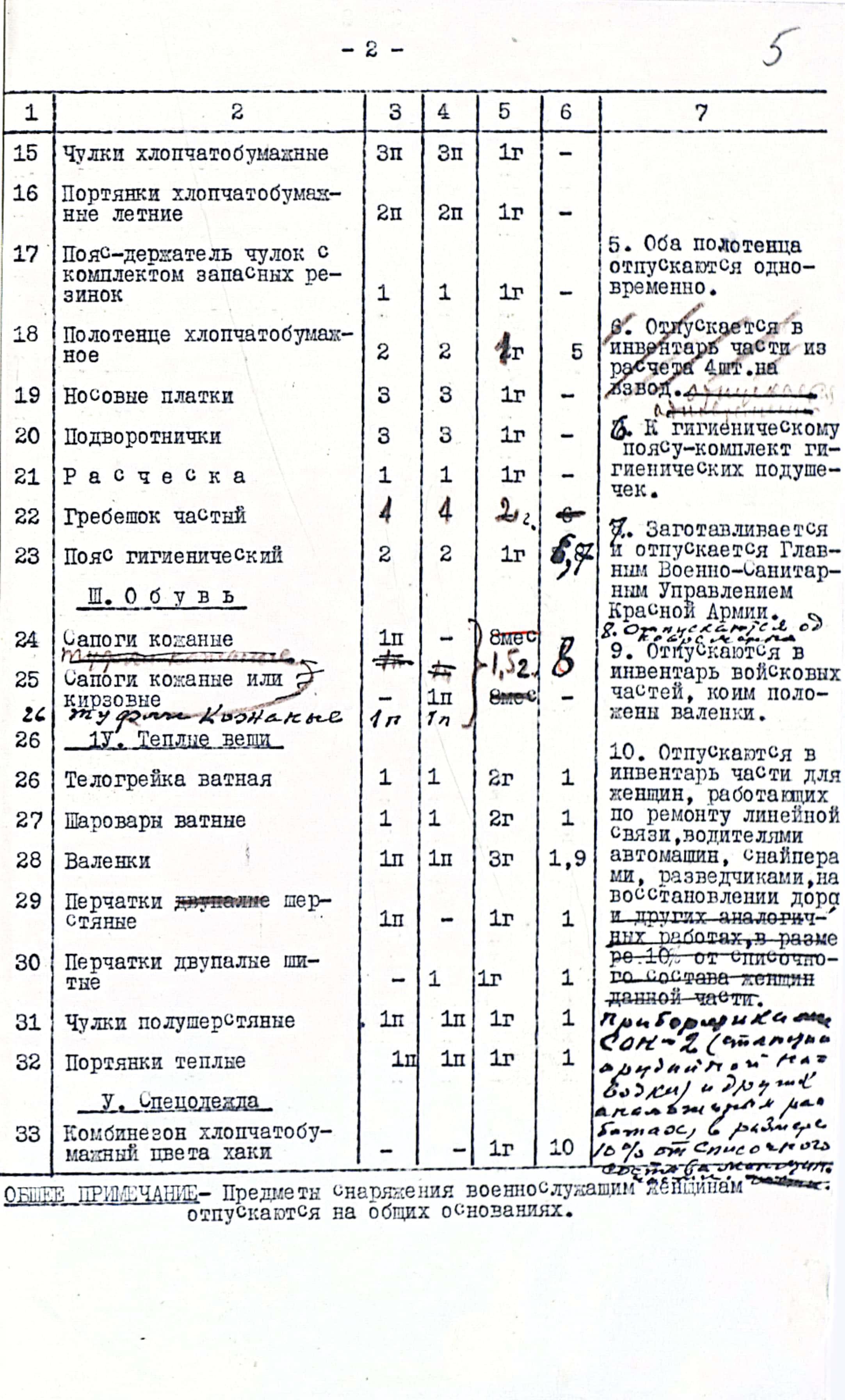 Вторая норма содержала гораздо меньший перечень предметов и предназначалась для военнослужащих женщин, проходивших военную службу в штабах, расположенных в тылу: