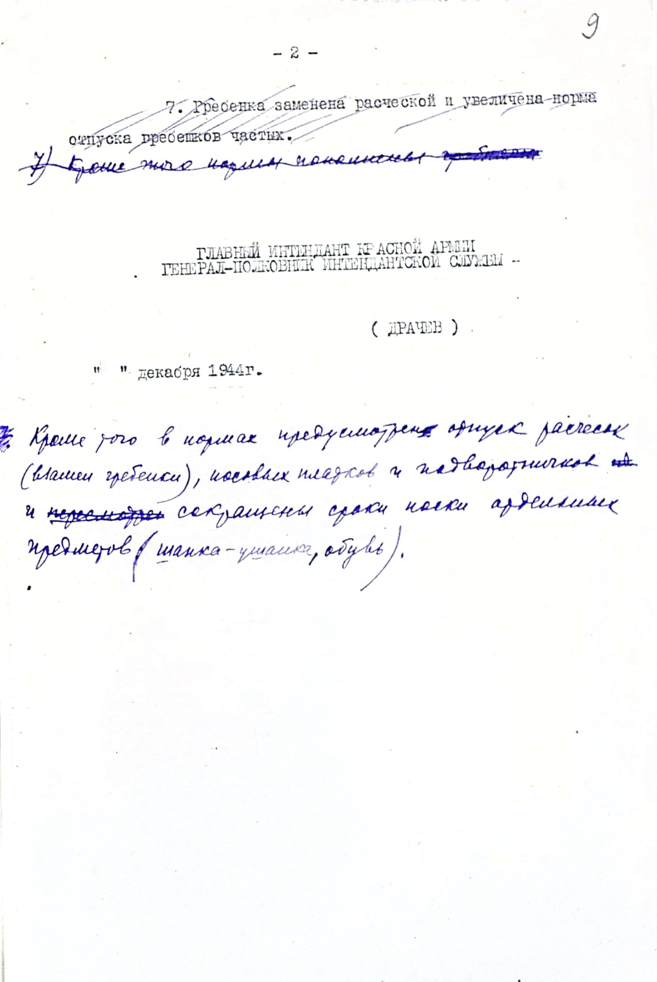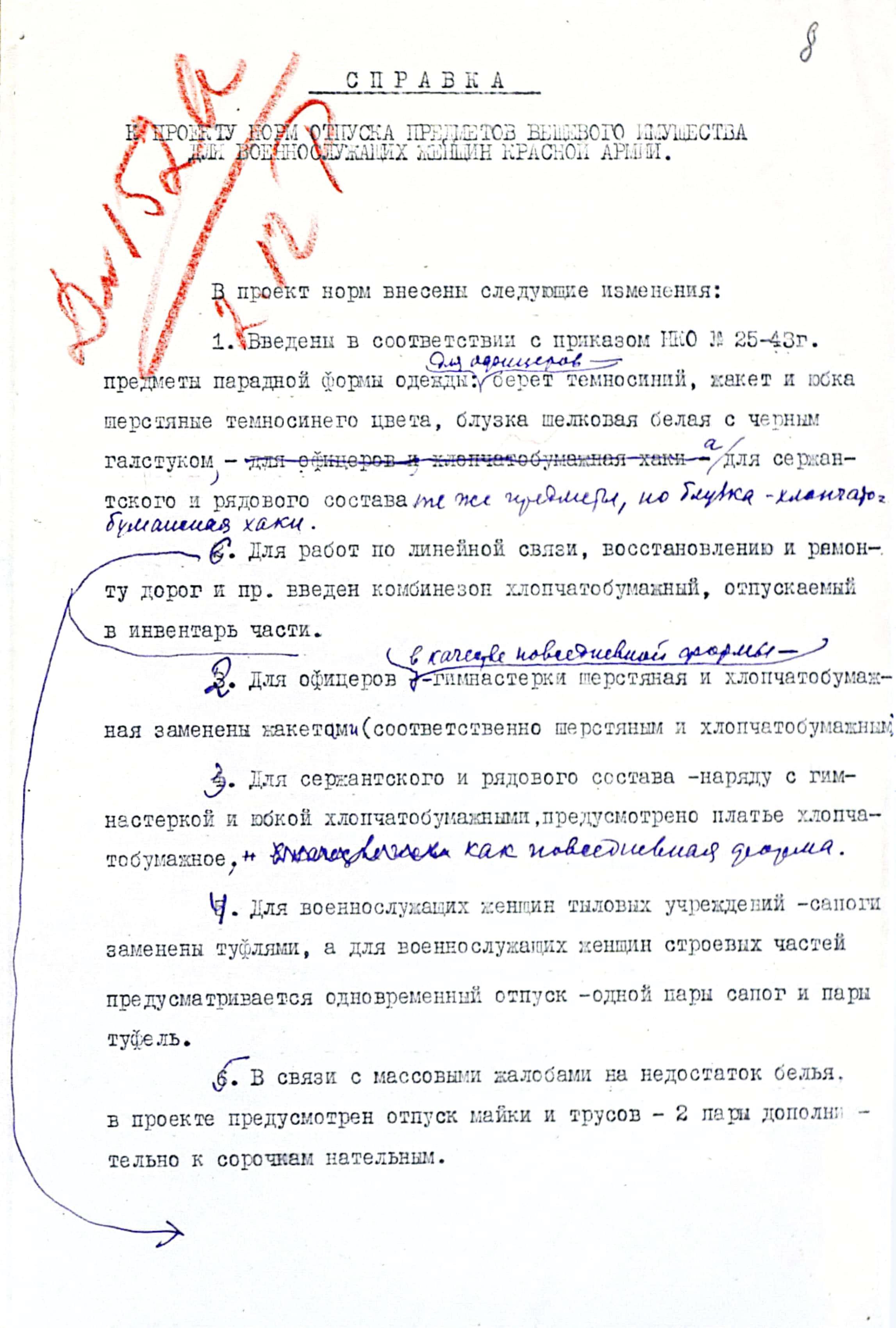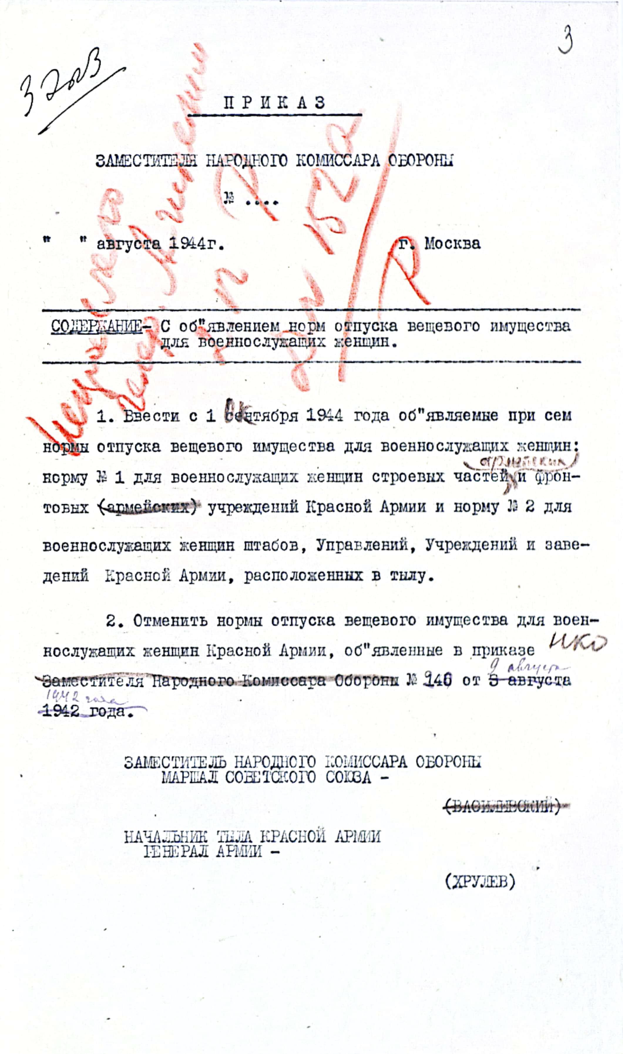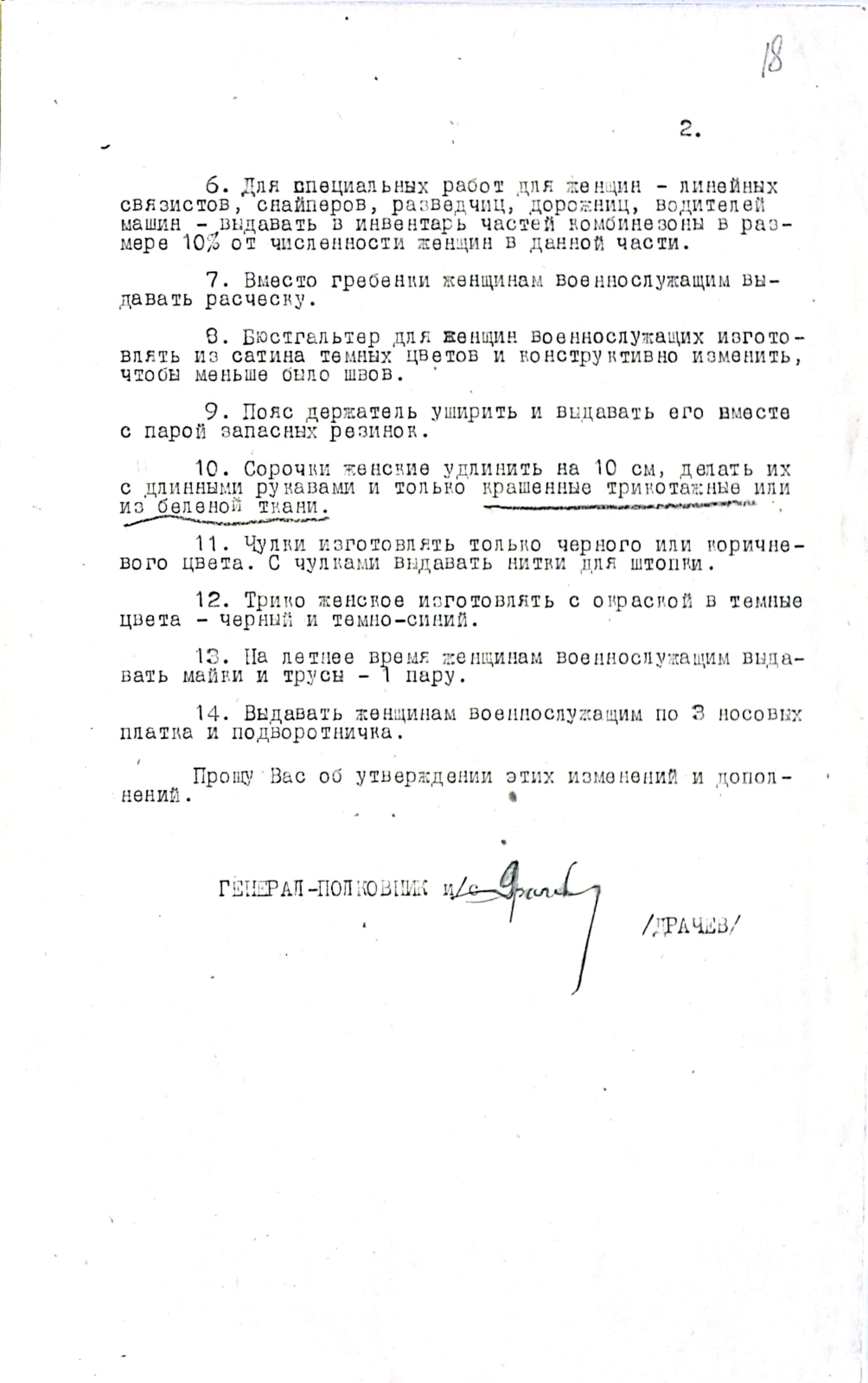На рассмотрение начальнику Тыла КА и Зам. Наркома обороны был представлен проект приказа, содержащий две нормы для военнослужащих женщин: