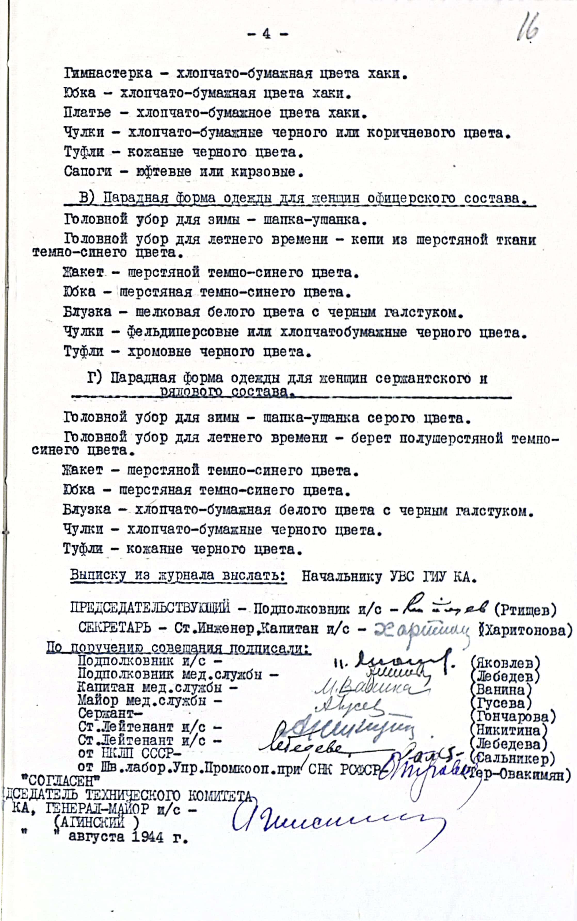 Проект норм для женщин Красной Армии. 1944 год.