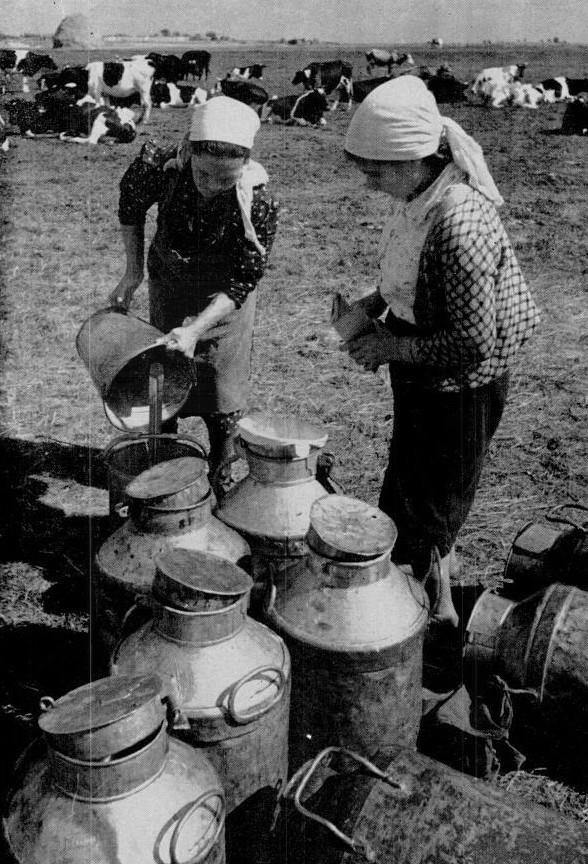 Доярки ухаживают за стадом из 146 породистых коров, измеряя удой каждой коровы по мере того, как он наливается в молочные бидоны. Доярки принадлежат к животноводческой бригаде. Ферма разделена на подразделения — животноводческую бригаду, зерновую бригаду, овощную бригаду — каждым из которых руководит бригадир. Колхоз им. Тельмана выпивает много своего молока, остальное отправляет на крупные московские рынки, где также продают его овощи.