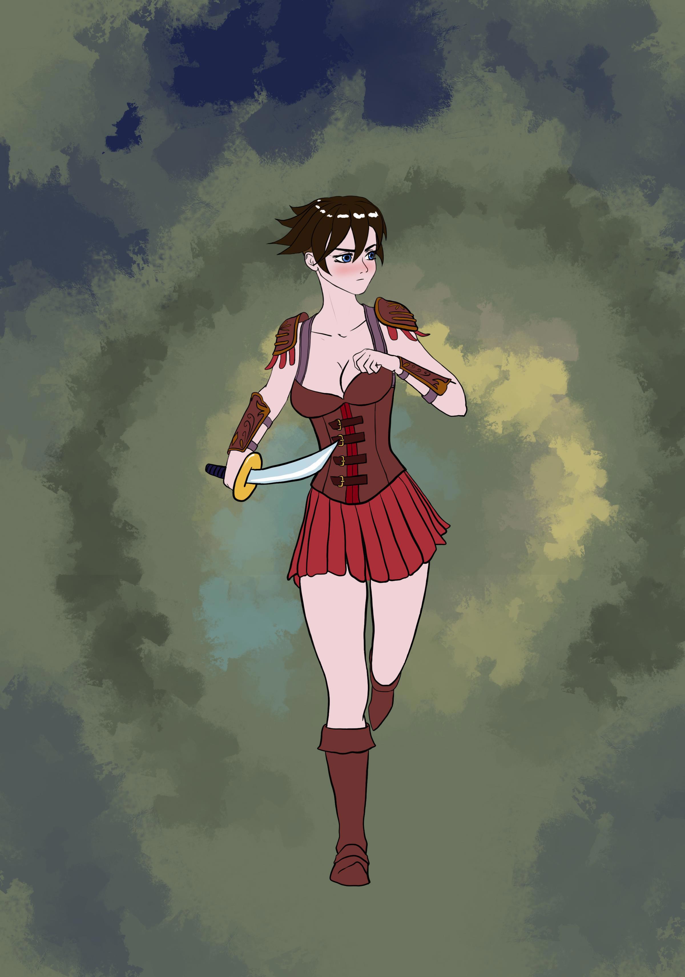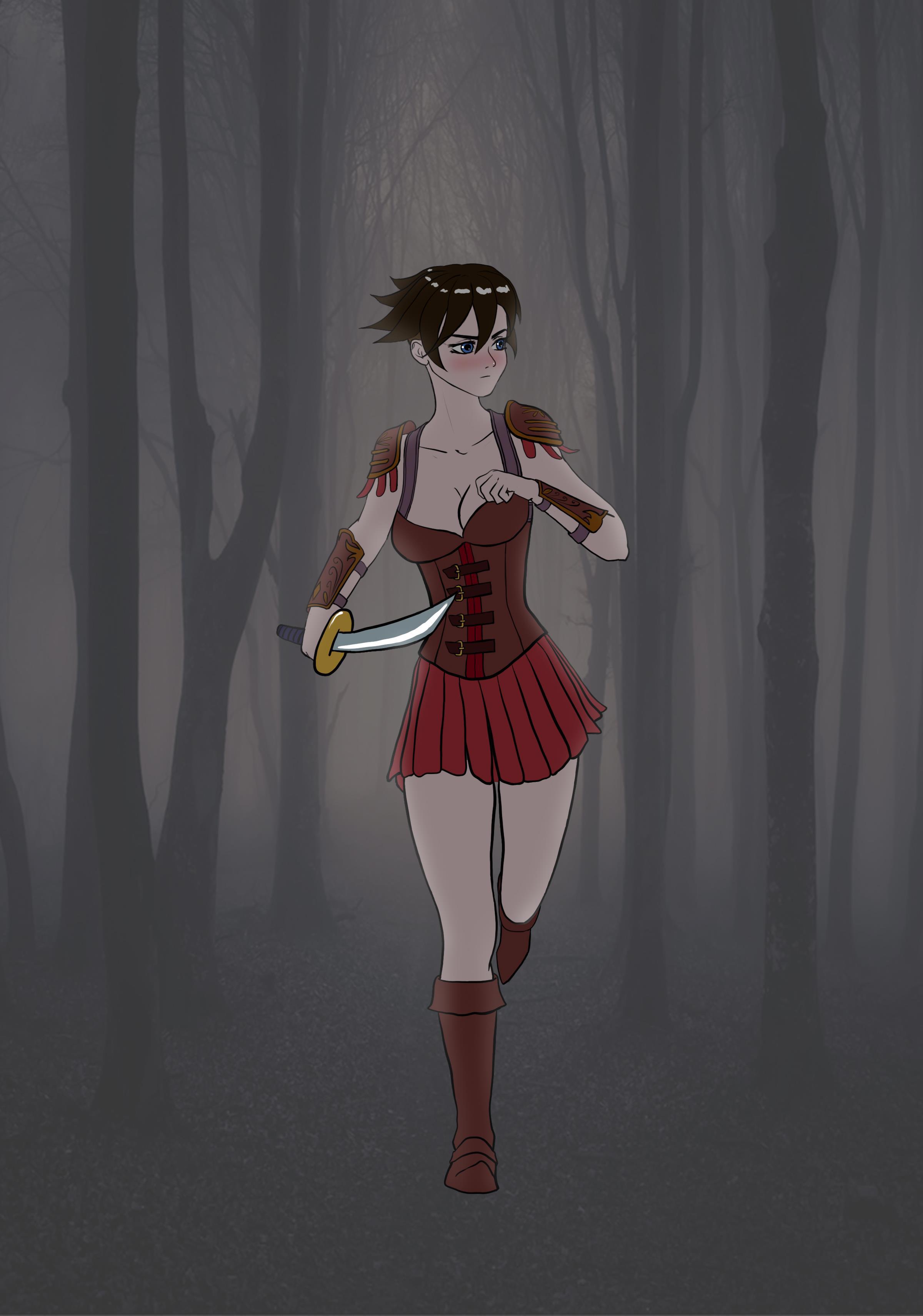 Непосредственно на обложки поступило два заказа. В первом случае был рассказ Манула Яростного "Арена крови". На этой обложке сразу же сказалось моё неумение рисовать сложный фон, в частности, мне так и не удалось изобразить ночной лес, поэтому пришлось использовать фото: