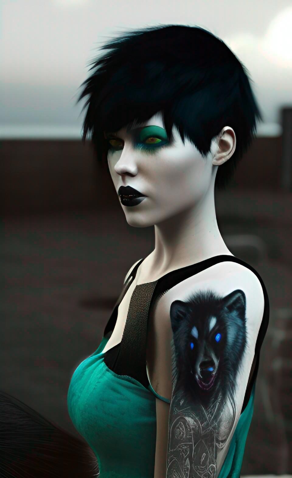 Лучшая на мой взгляд. Хоть волк и присутствует лишь в виде тату, а глаза жутковаты, будто девушка таки озомбела ))