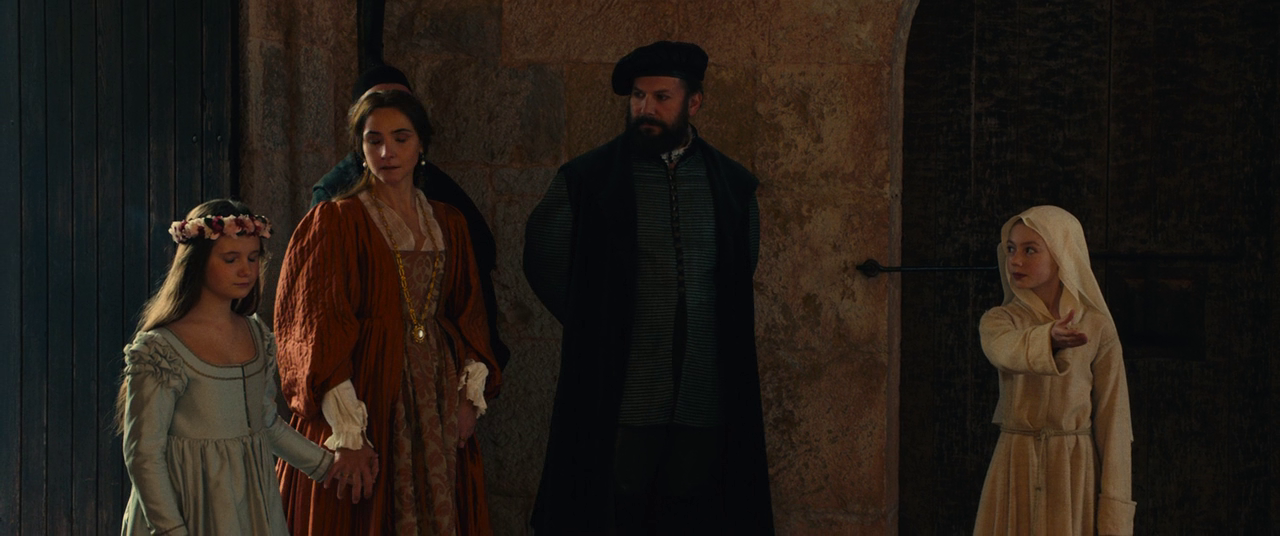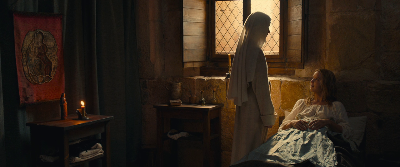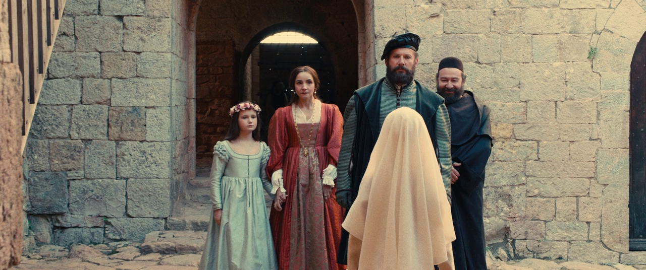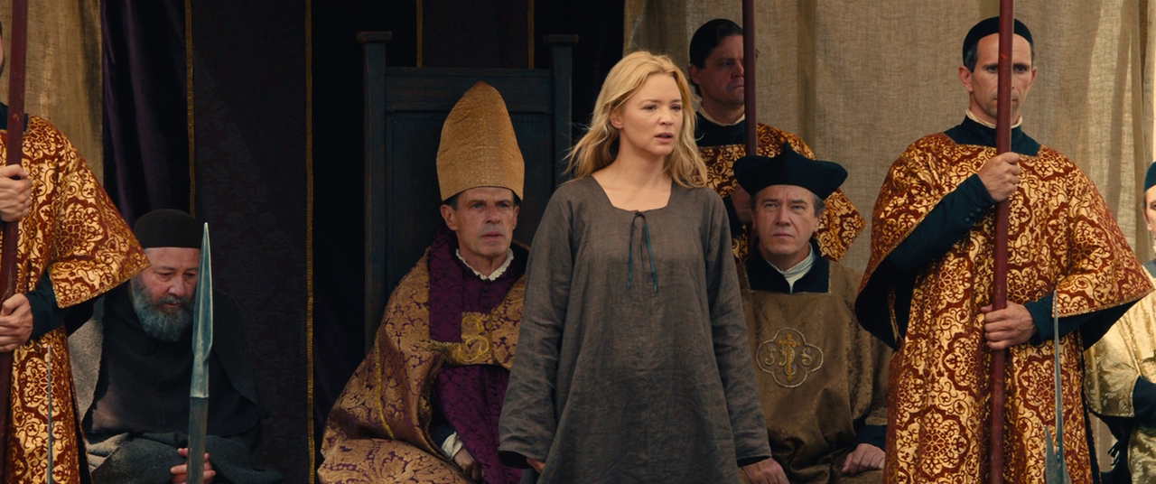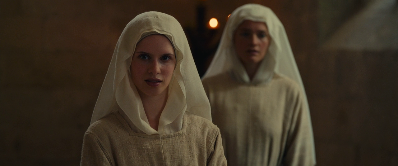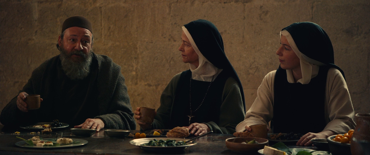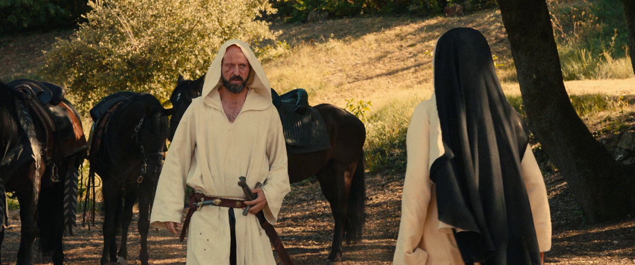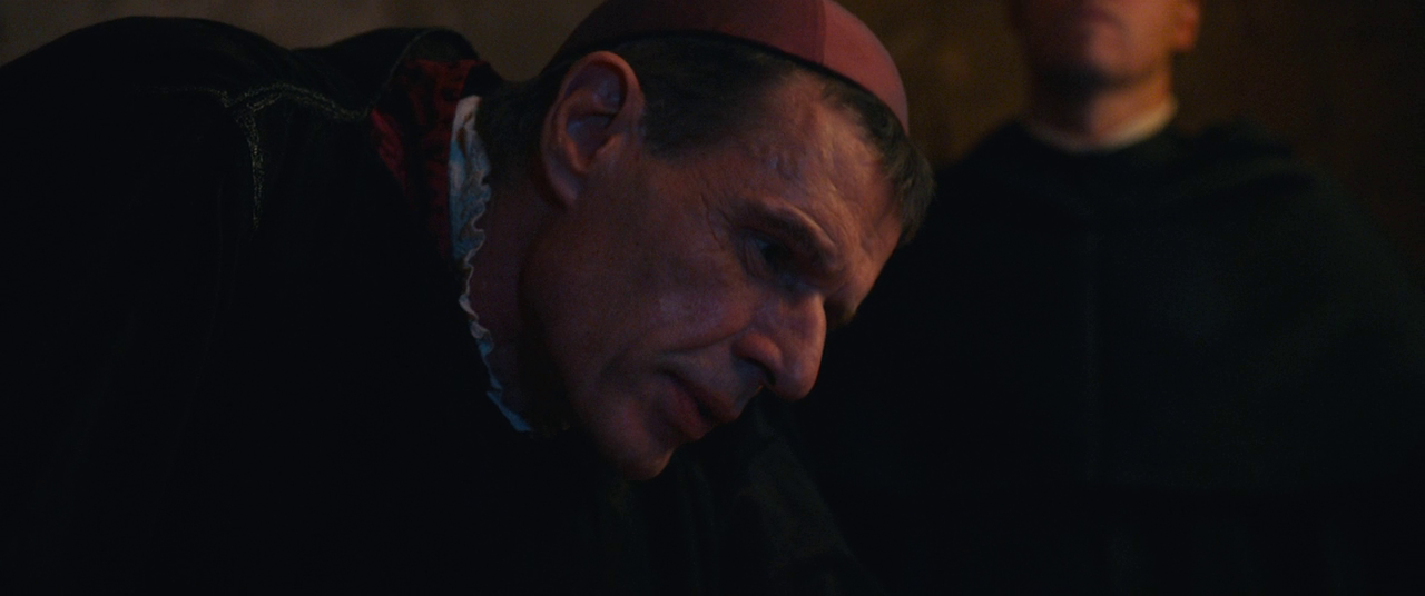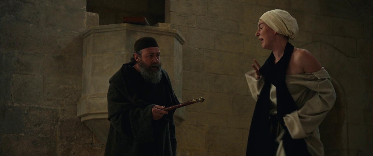 Именно так я себе представлял инквизитора Бернарда Ги в романе "Имя розы". У меня было чувство, что этот инквизитор в фильме словно сошел со страниц романа Умберто Эко. Колючие, проницательные глаза, определенная манера разговаривать и держаться. В фильме он выступает, как условный антагонист, но каким-то особым злодеем его назвать тяжело, по крайней мере мне. Он принимает крайне взвешенные решение, сначала хорошо во всем разбирается, прежде чем выносить приговор. В женском монастыре он наводит самый настоящий кипиш, проводит там расследование, чтобы выяснить кто на кого наговаривает клевету, а кто действительно совершает преступление против церкви и бога. Хладнокровный, неподкупный. хорошо разбирающийся в людях. При этом сам он совершенно искренне верит в бога, это не какой-то там циничный карьерист. При этом, он вызывает реальное чувство страха и отвращения.
