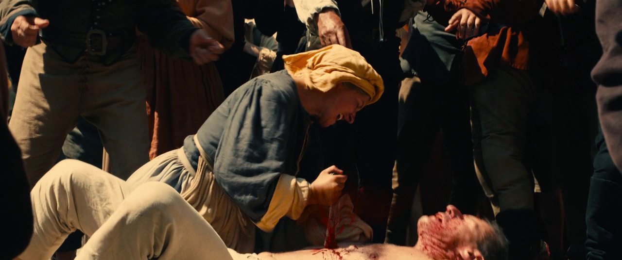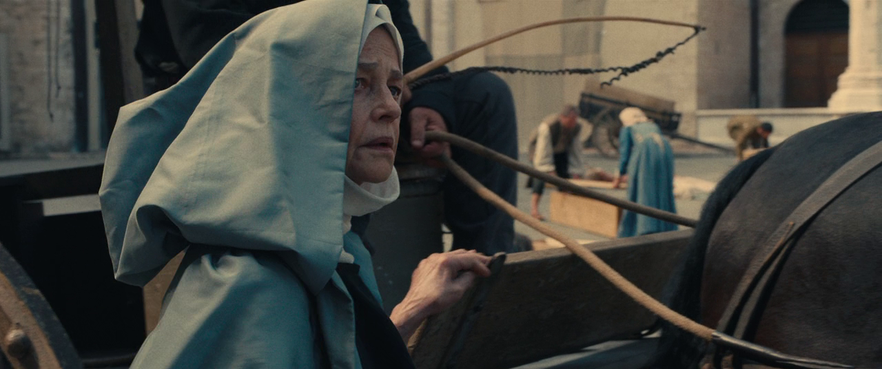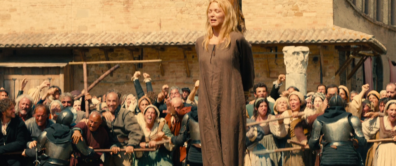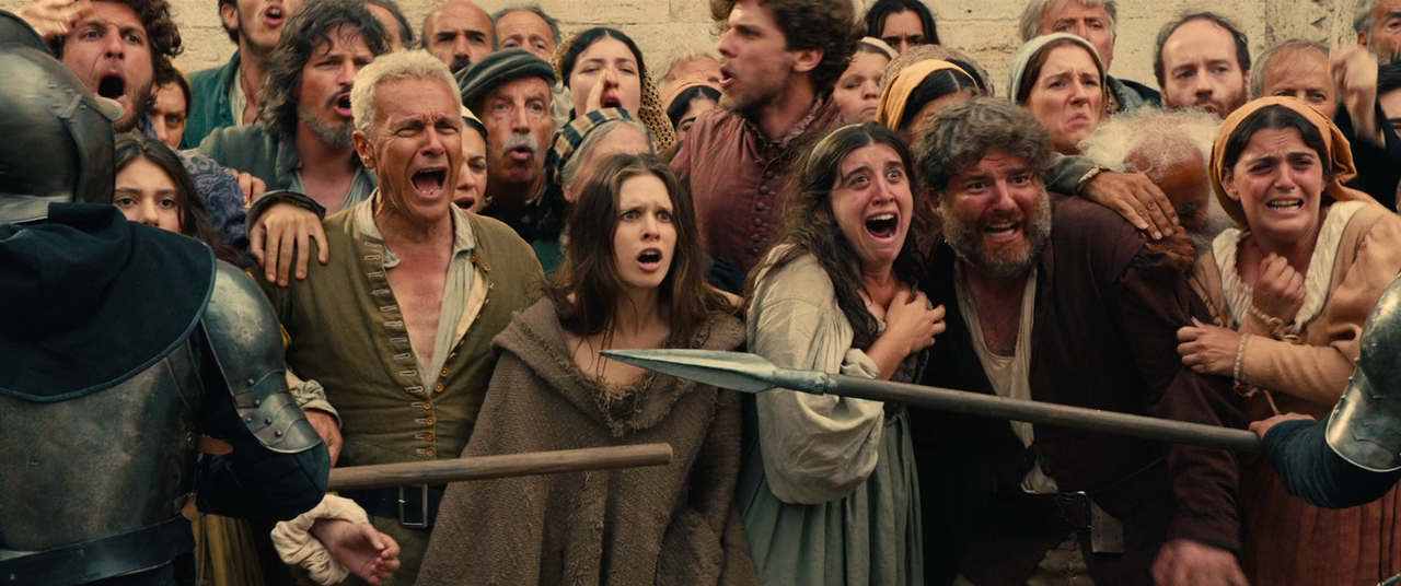Но самое большое впечатление на меня произвела сцена казни Бенадетты в конце фильма. Она очень короткая, но там просто невероятным образом показана разъяренная толпа. Фанатики, которые любят свою святую Бенадетту и сметают на своем пути солдат в кирасах, хватают этого несчастного инквизитора и разрывают его на куски. Сцена, где какая-то женщина набрасывается на него и начинает ножом фигачить по инквизитору жуткая и завораживающая.