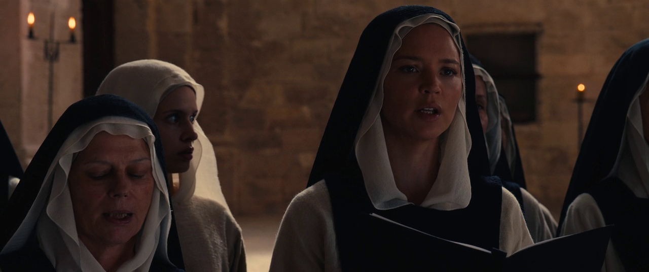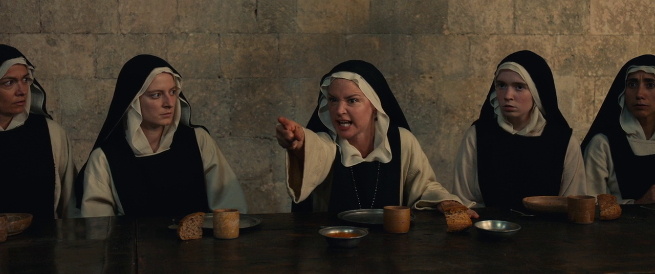 В принципе, мне неохота пересказывать весь сюжет. История не плоская, там много интересных и ярких персонажей. Можно отследить не один, а целую серию конфликтов и вопросов, которые задает фильм. В первую очередь, это конечно же борьба за власть в монастыре, внутренние интриги между монахинями, в центре которых стала эта парочка лесбух-грешниц. Во вторую очередь, внутренние конфликты героев. Главную героиню Бернадетту раздирает внутренний конфликт веры. Она действительно искренне верит в бога, одновременно, сходит с ума от подавленной энергии, становится в монастыре и всей округе, святой, как сейчас модно выражаться, инфлюэнсером. Она получает реальную власть и положение, ее слушаются священники, солдаты, а простолюдины просто любят ее как свою святую Бернадетт.