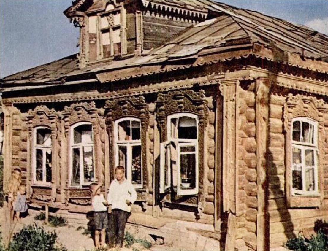 СТАРАЯ РОССИЯ увековечена в этом бревенчатом домике со слуховым окном. Плохо одетые босоногие дети, играющие на улице, мало чем отличаются от деревенских детей во многих частях США.