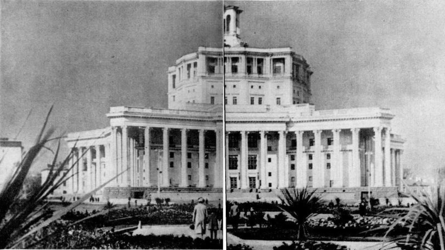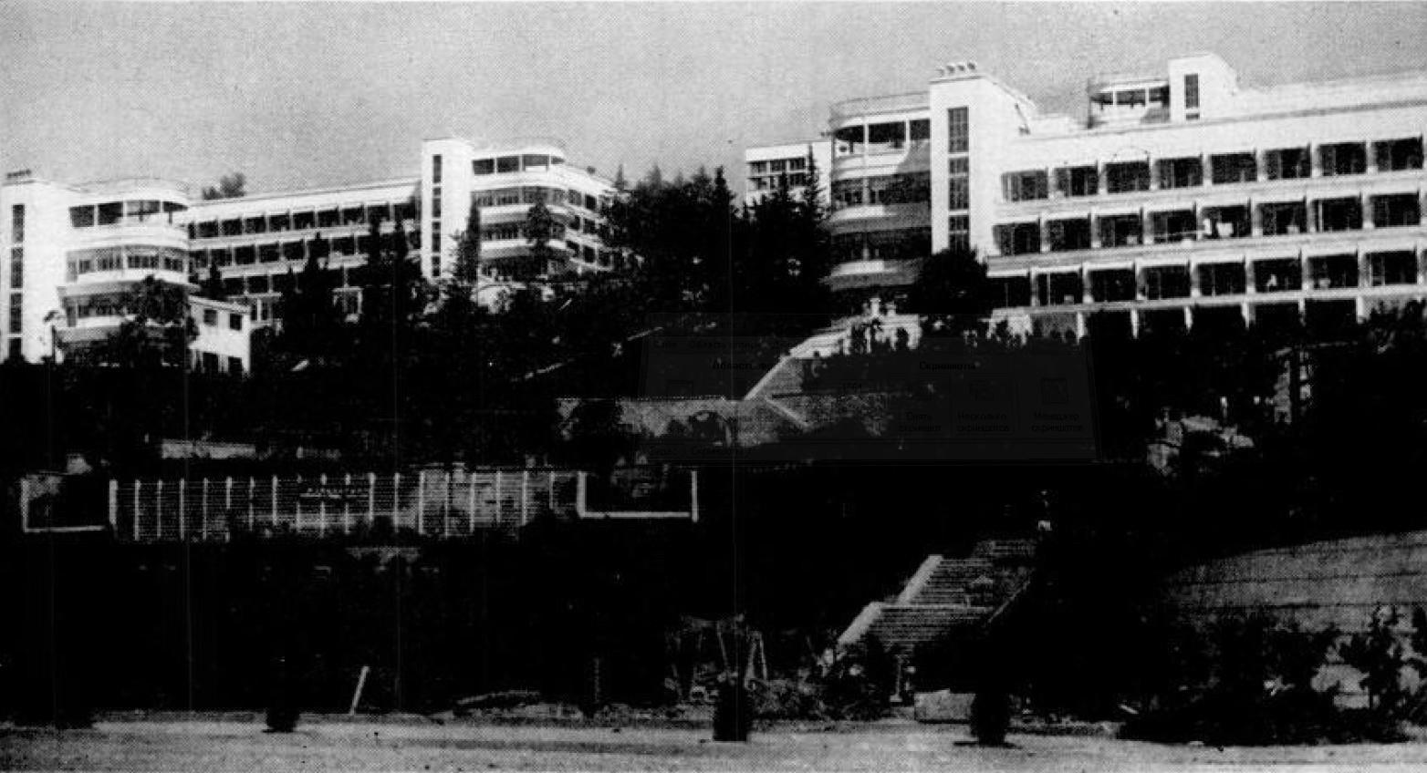Санаторий Красной Армии в Сочи - еще один красивый образец послереволюционной архитектуры. Как и Библиотека имени Ленина, он освещен за счет использования стекла и отсутствия массивных стен. Эти строительные блоки функциональны и спроектированы таким образом, чтобы пропускать максимум света и воздуха. Фотографии на этих страницах были показаны на Московской архитектурной выставке.