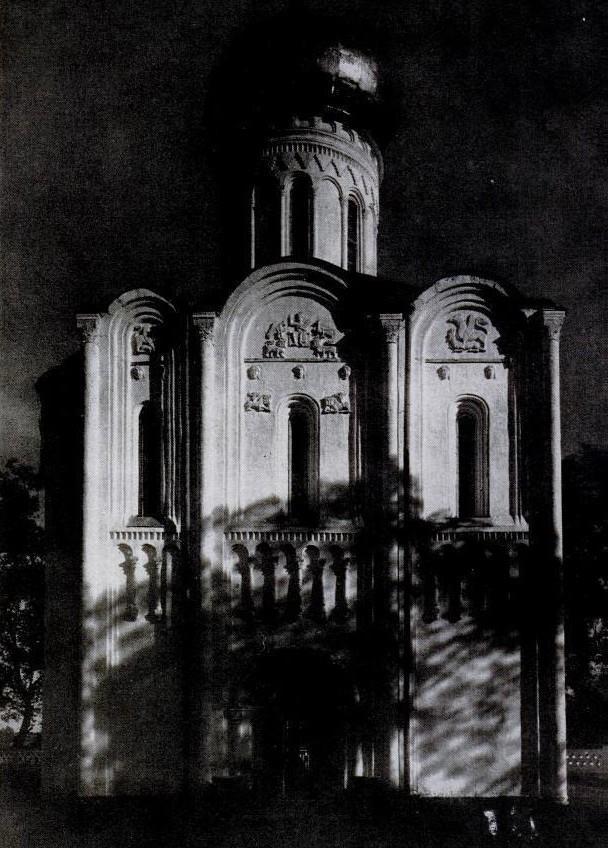 Дмитриевский собор во Владимире. шедевр русской архитектуры 12-го века, демонстрирующий влияние византийских и романских форм. СССР теперь гордится своими старыми церквями и сохранил их как национальные памятники. Некоторые из них до сих пор используются как церкви, другие как музеи.