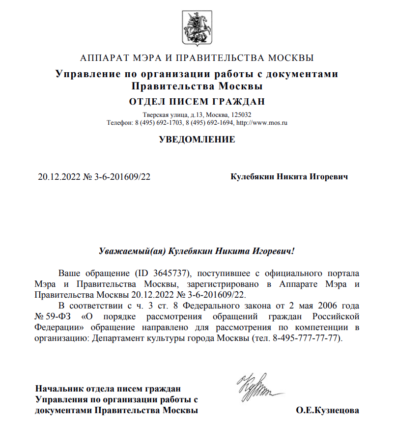 Как практикующий юрист, я не привык выражаться по проблеме исключительно в публичной сфере, не совершая хоть сколько-нибудь реального действия. Поэтому, выделив полчаса, отправил письмо мэру Москвы. Содержание его я приведу. Не судите строго, ибо во времени я был ограничен.